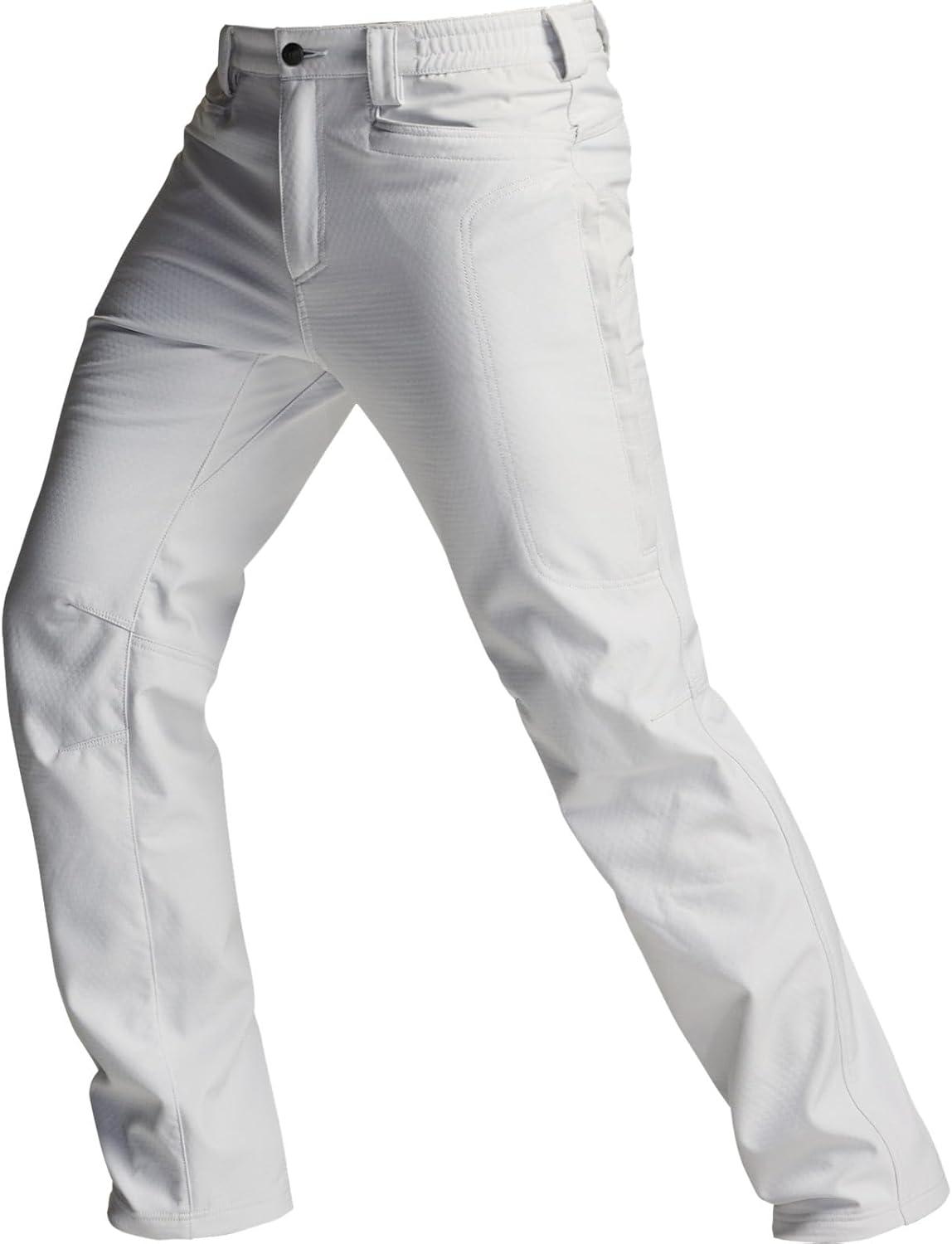CQR Men’s Softshell Fleece Lined Winter Hiking Pants, Water Resistant Insulated Thermal, Outdoor Tactical Warm Snow Ski Pants(Recon White)