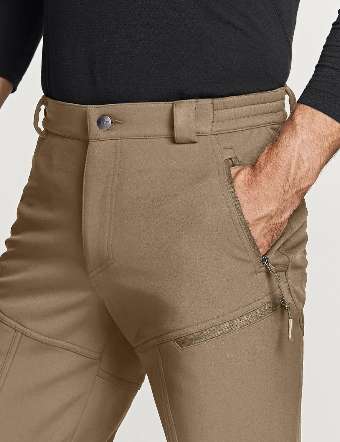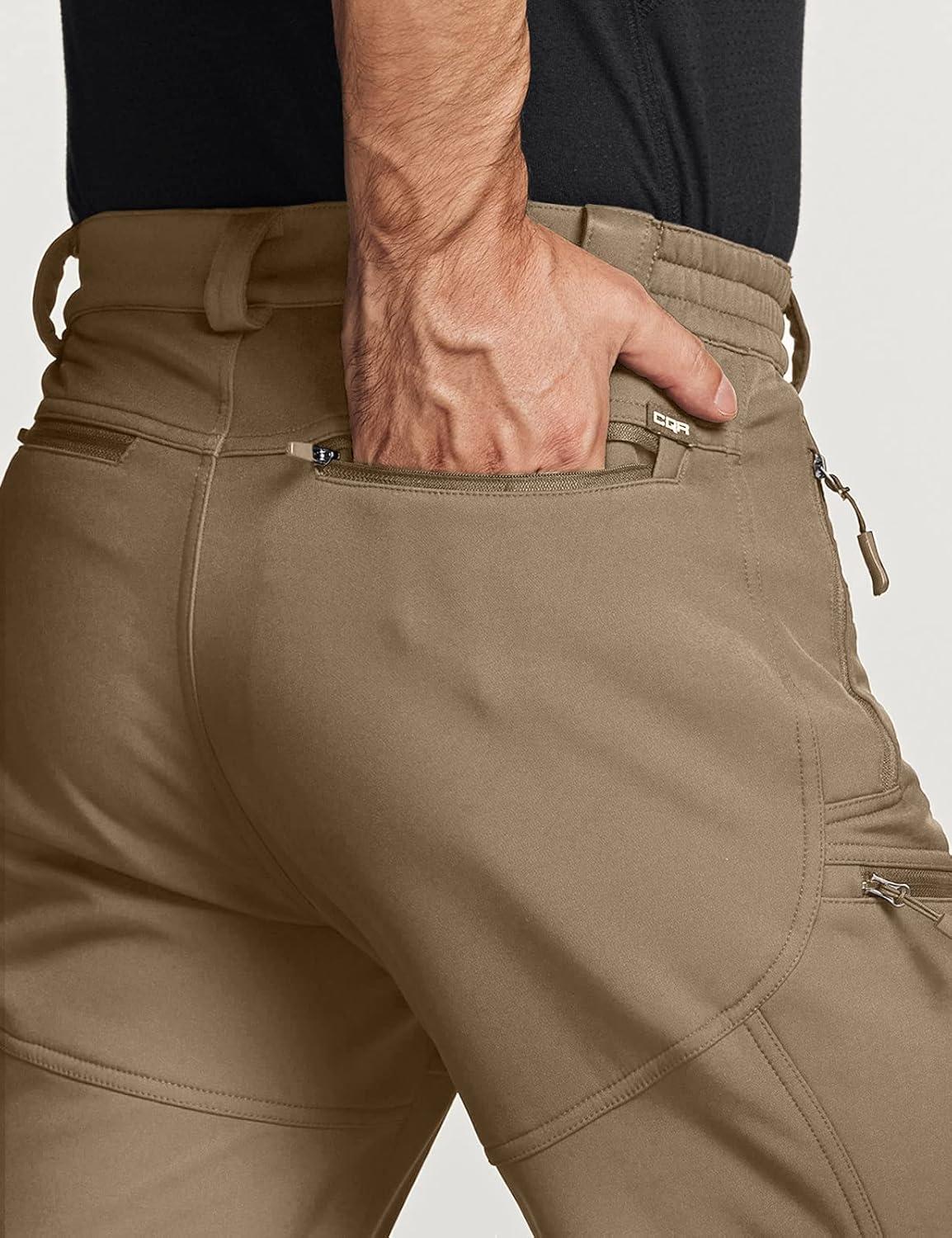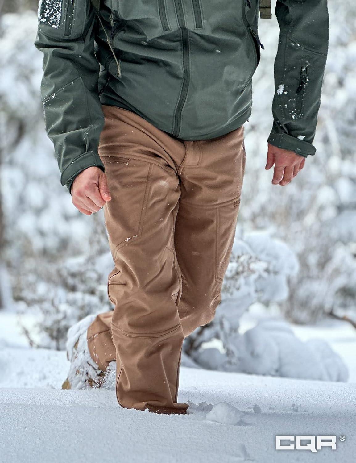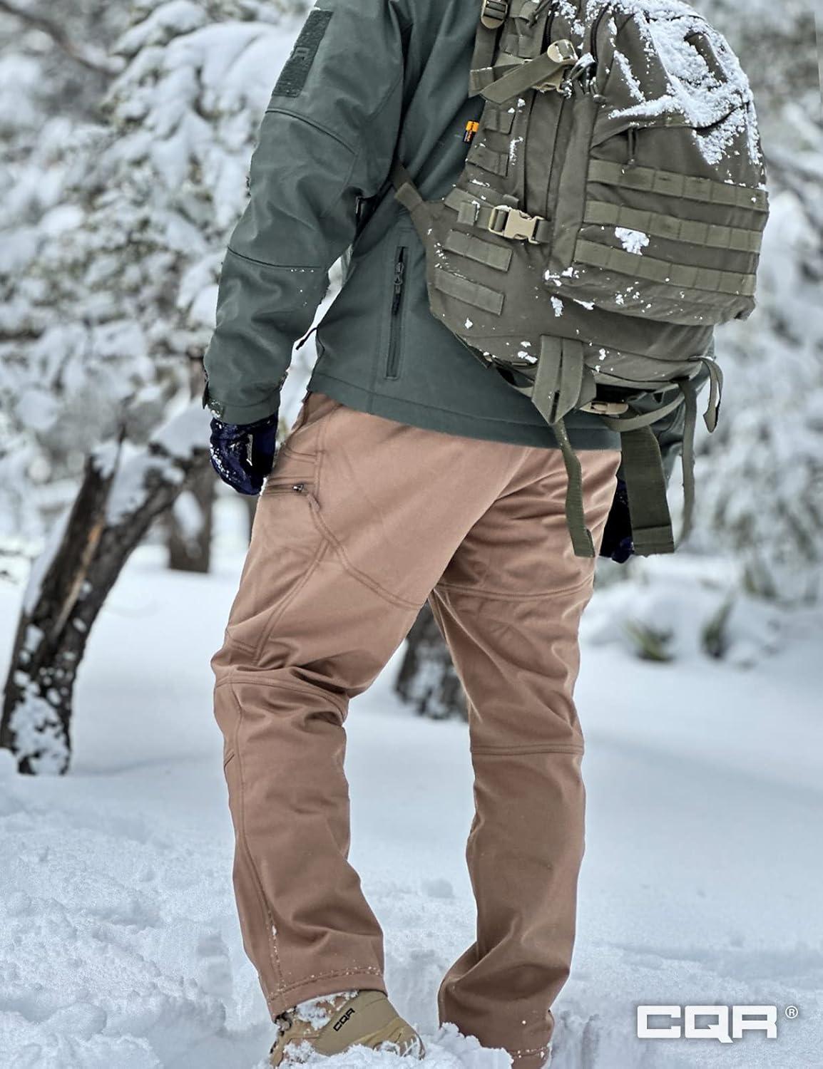 CQR Men’s Softshell Fleece Lined Winter Hiking Pants, Water Resistant Insulated Thermal, Outdoor Tactical Warm Snow Ski Pants(Side Zipper Pocket Coyote)