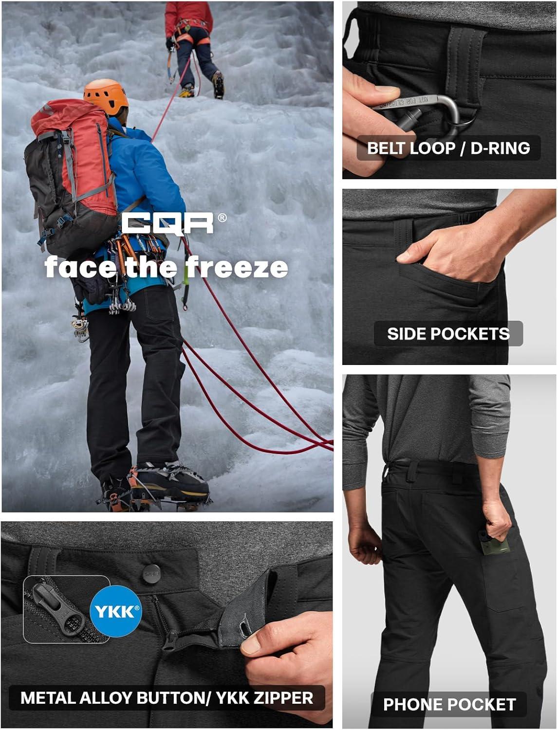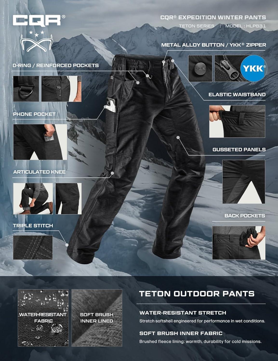 CQR Men’s Softshell Fleece Lined Winter Hiking Pants, Water Resistant Insulated Thermal, Outdoor Tactical Warm Snow Ski Pants(Teton Black)