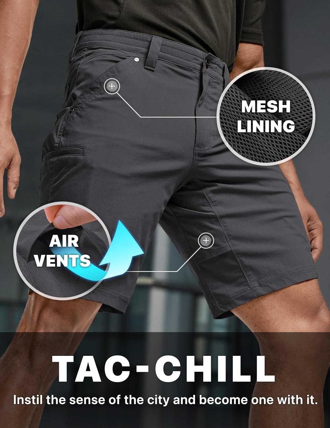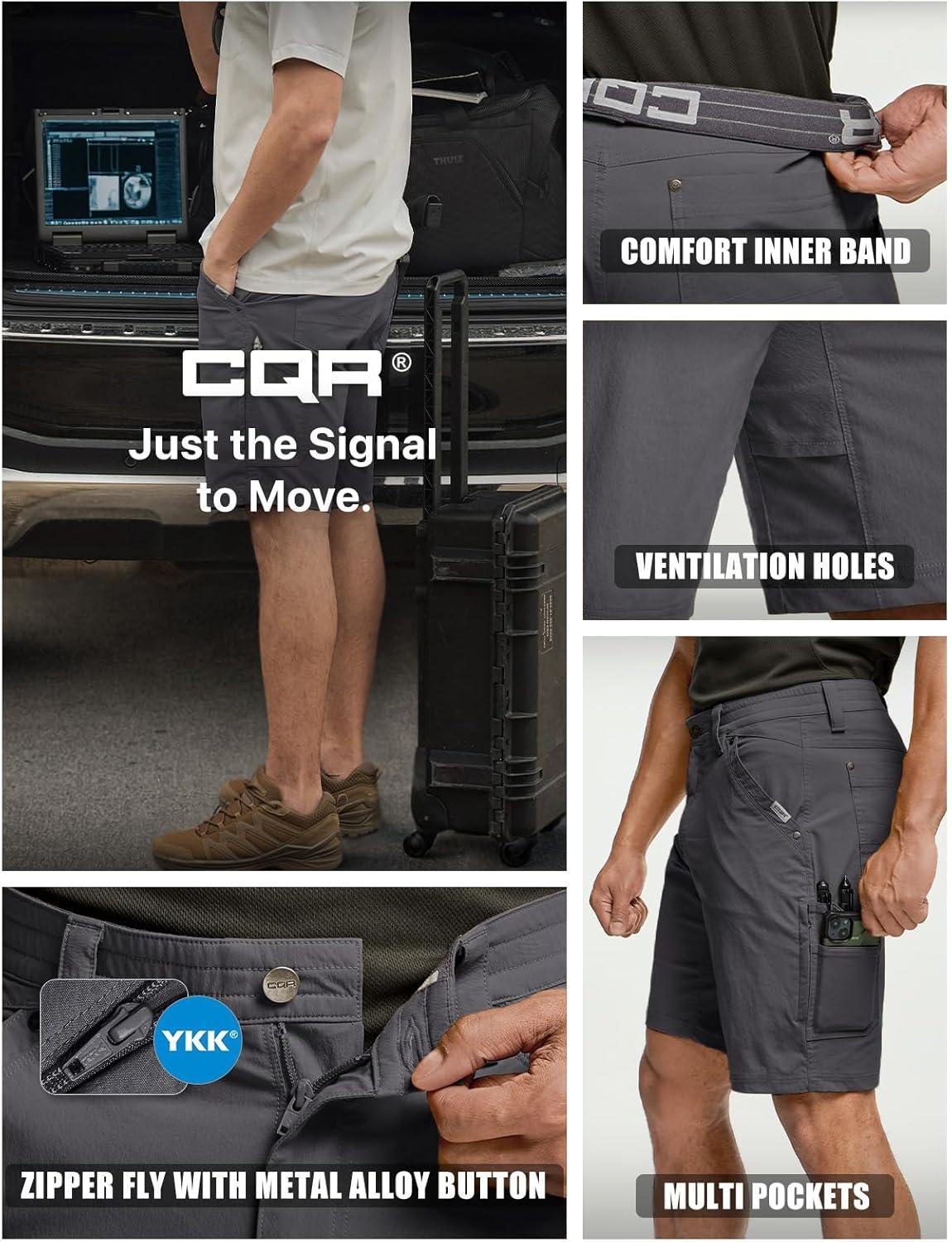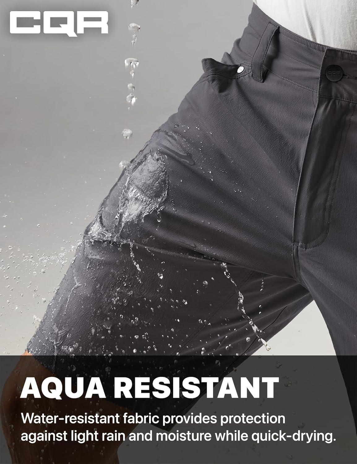 CQR Men’s Stretch Utility Shorts, Lightweight Quick Dry Casual Shorts, Hiking Golf Cargo Shorts with Zipper Pockets(Sedona Charcoal)