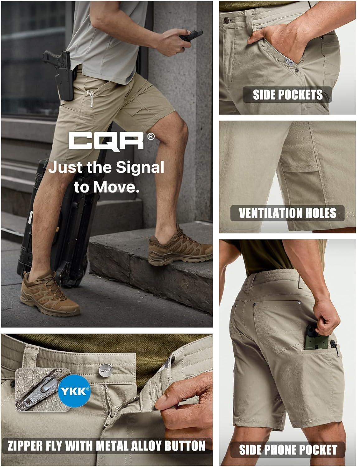 CQR Men’s Stretch Utility Shorts, Lightweight Quick Dry Casual Shorts, Hiking Golf Cargo Shorts with Zipper Pockets(Sedona Desert Sand)