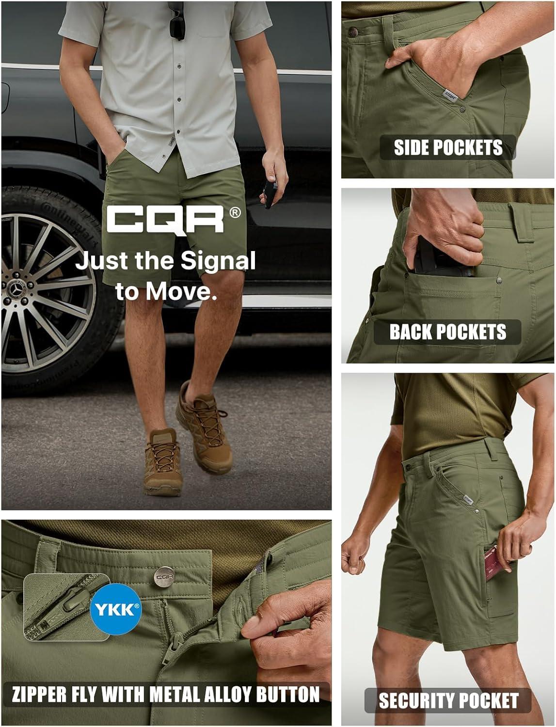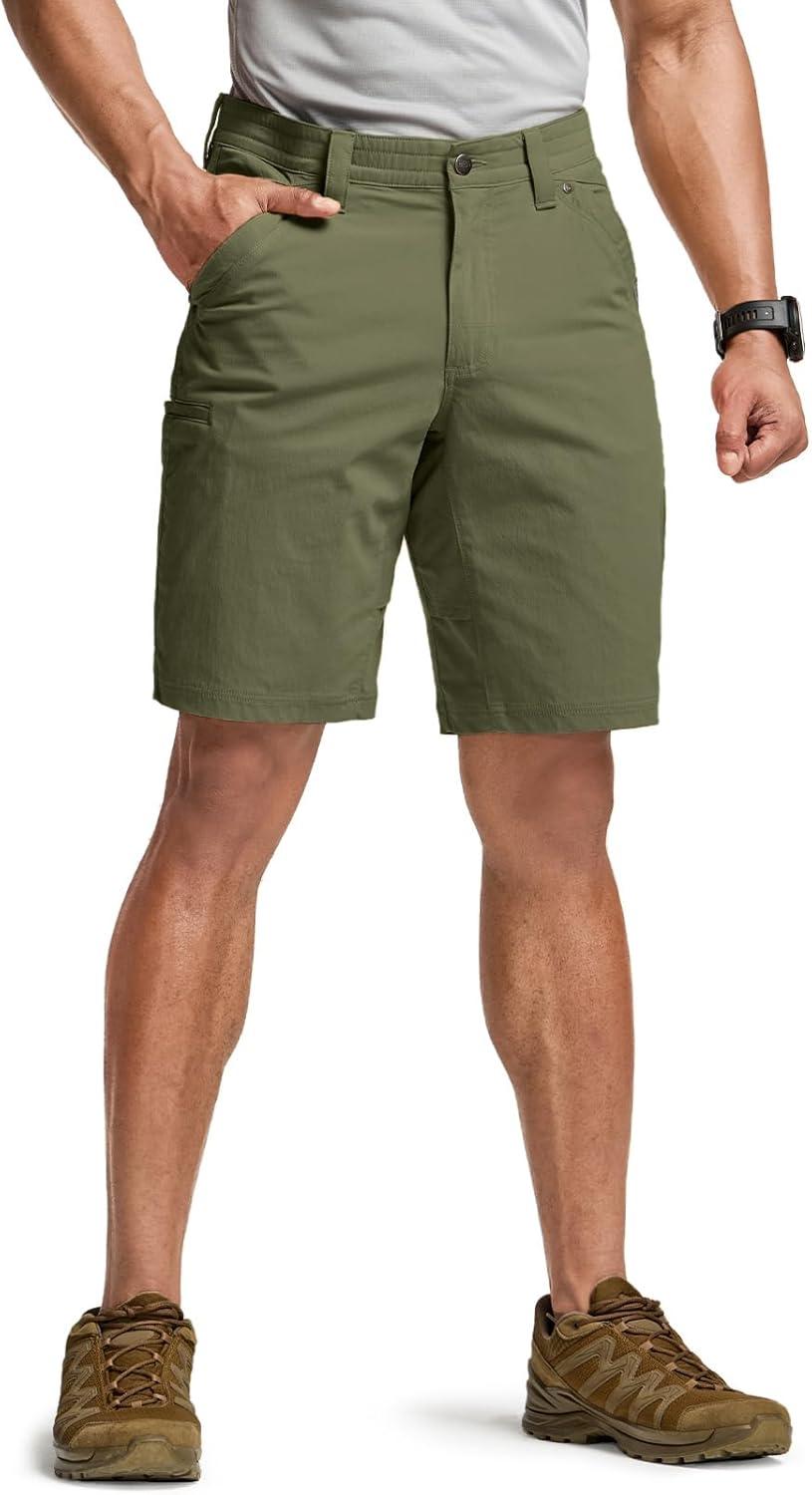 CQR Men’s Stretch Utility Shorts, Lightweight Quick Dry Casual Shorts, Hiking Golf Cargo Shorts with Zipper Pockets(Sedona Soil Green)