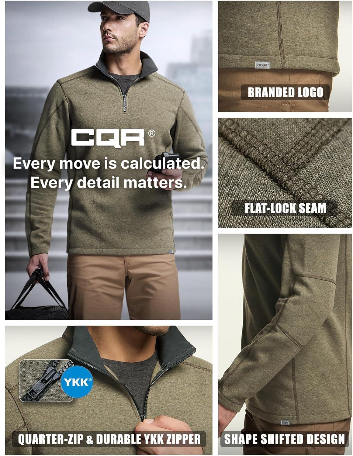 CQR Men’s Thermal Fleece Quarter Zip Sweater, Outdoor Lightweight Long Sleeve Pullover, Casual Mock Neck Polo Sweaters(Covert Oatmeal)