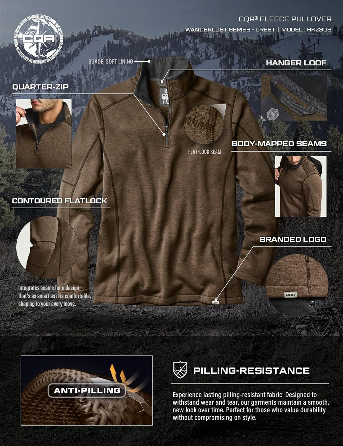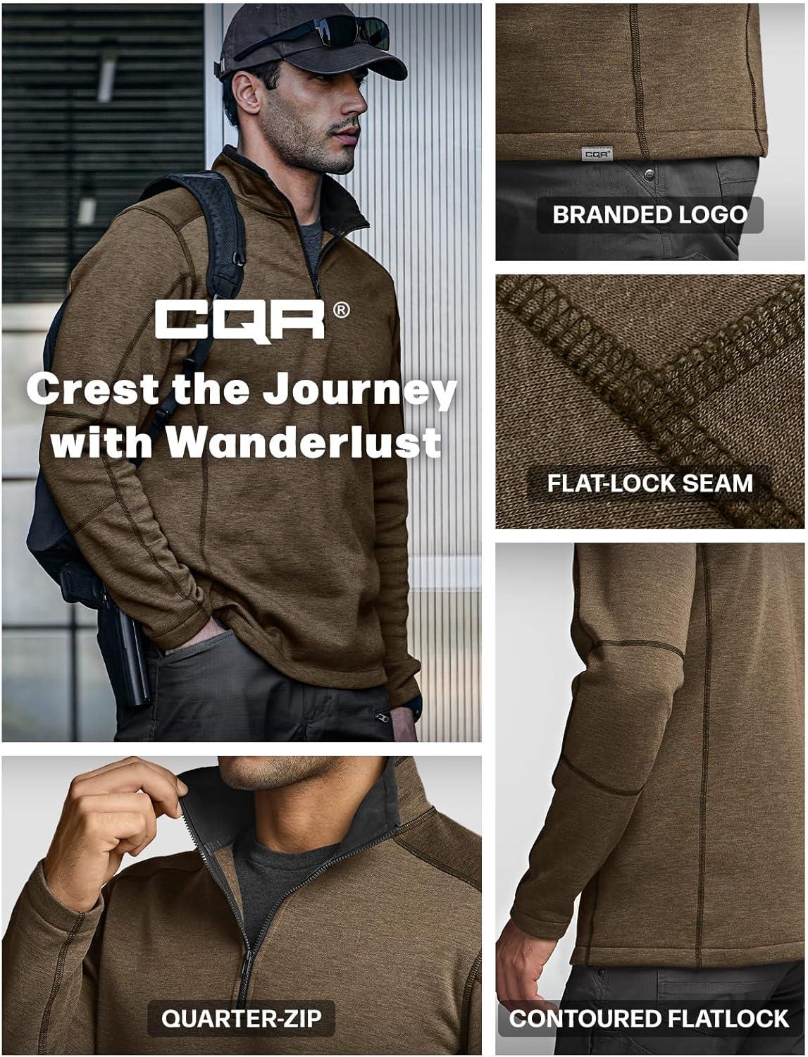 CQR Men’s Thermal Fleece Quarter Zip Sweater, Outdoor Lightweight Long Sleeve Pullover, Casual Mock Neck Polo Sweaters(Crest Hazelnut)