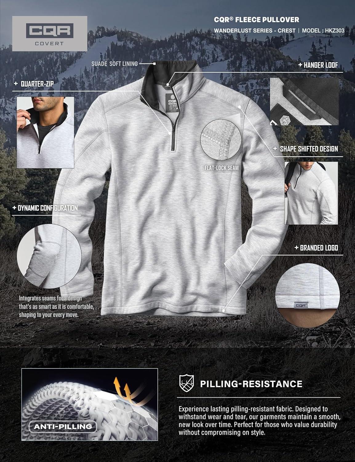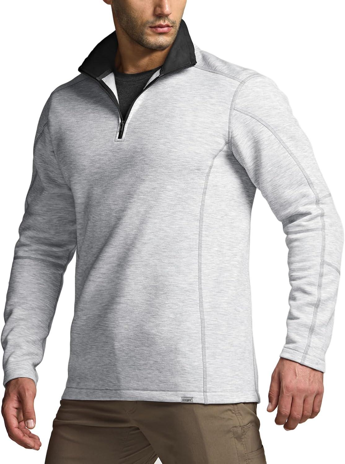 CQR Men’s Thermal Fleece Quarter Zip Sweater, Outdoor Lightweight Long Sleeve Pullover, Casual Mock Neck Polo Sweaters(Crest Light Grey)