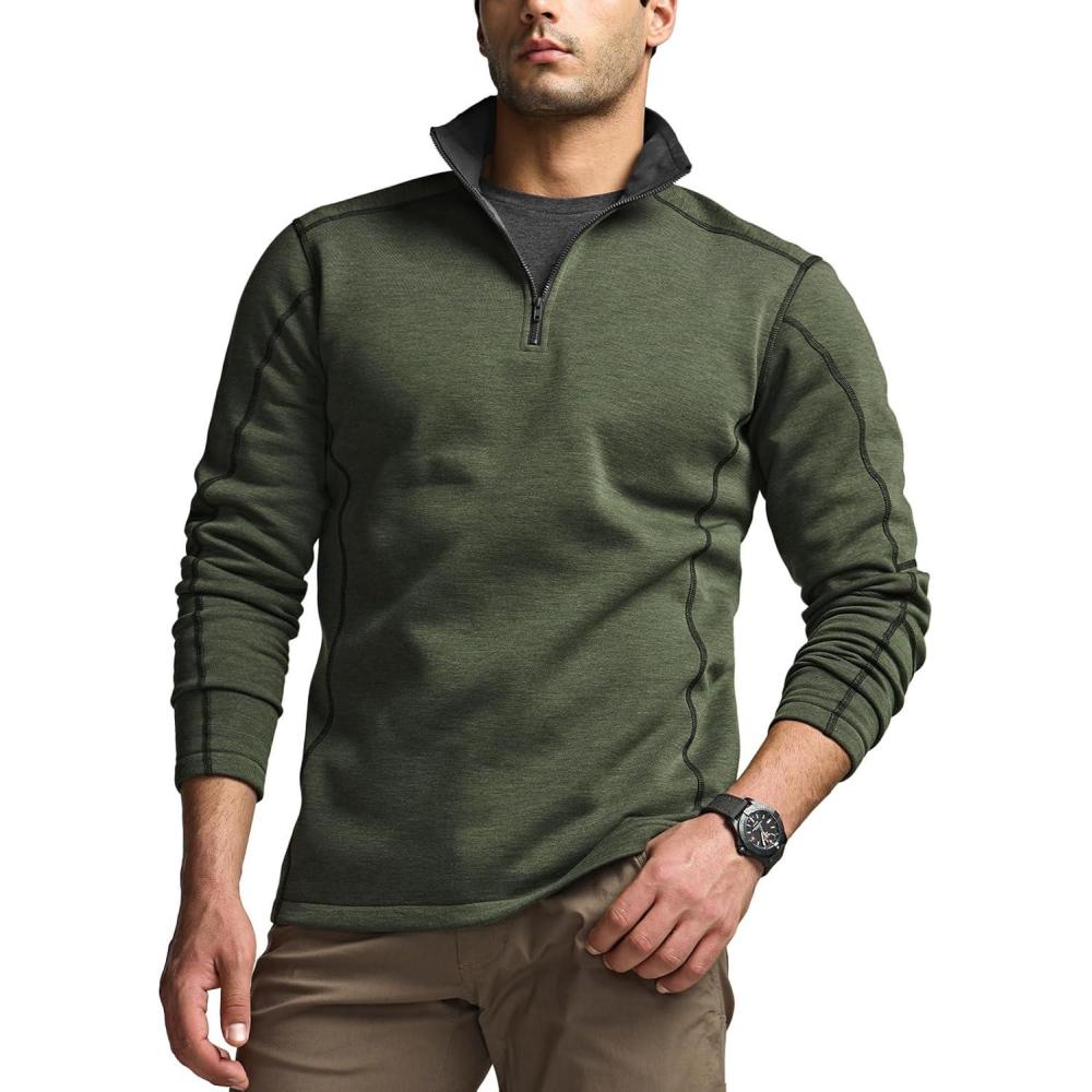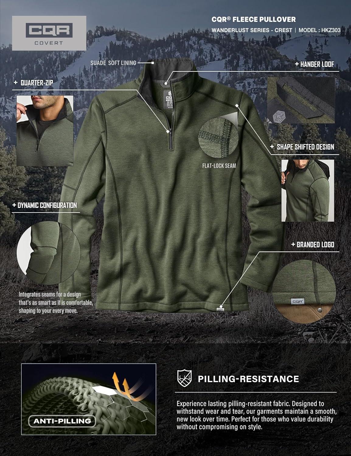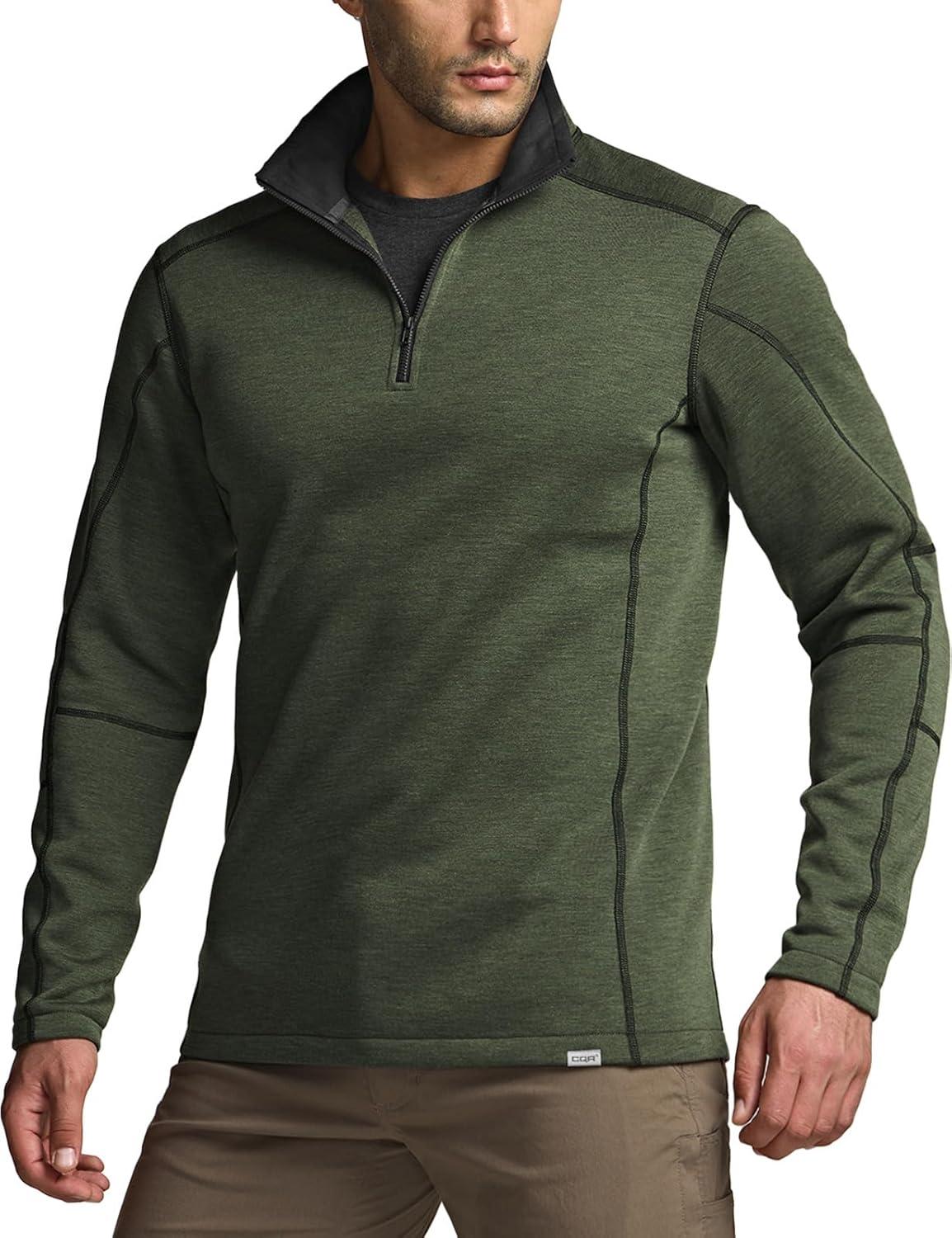 CQR Men’s Thermal Fleece Quarter Zip Sweater, Outdoor Lightweight Long Sleeve Pullover, Casual Mock Neck Polo Sweaters(Crest Olive)