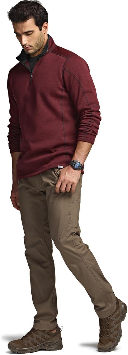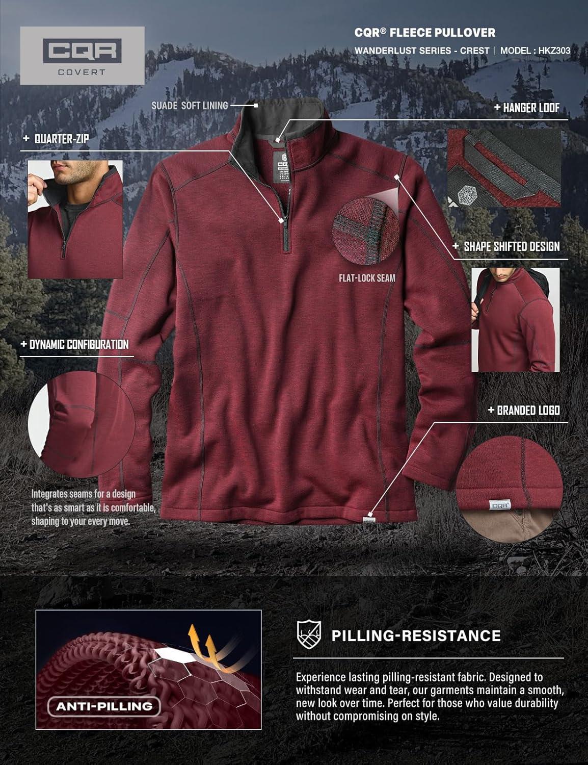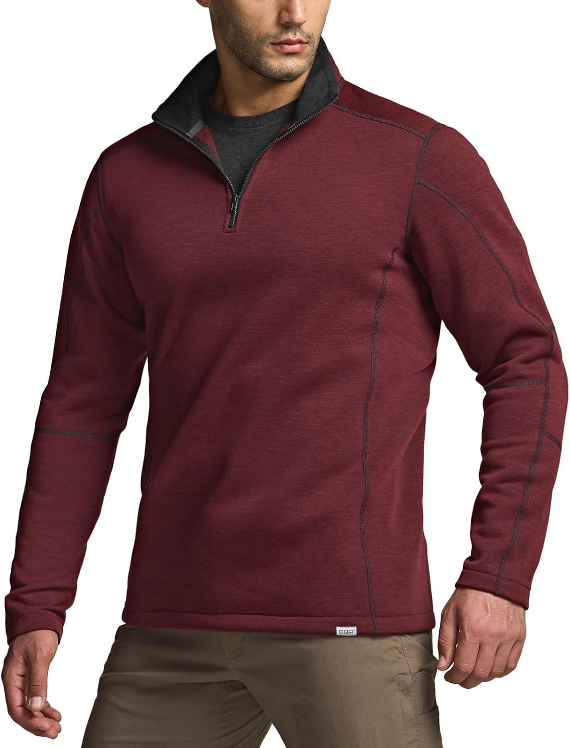 CQR Men’s Thermal Fleece Quarter Zip Sweater, Outdoor Lightweight Long Sleeve Pullover, Casual Mock Neck Polo Sweaters(Crest Wine)