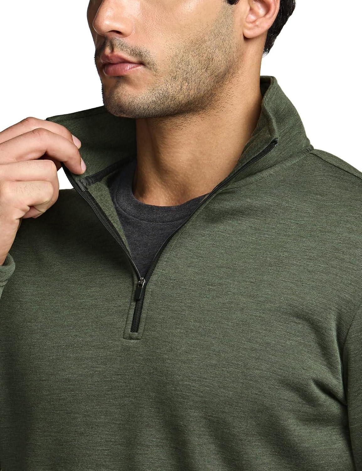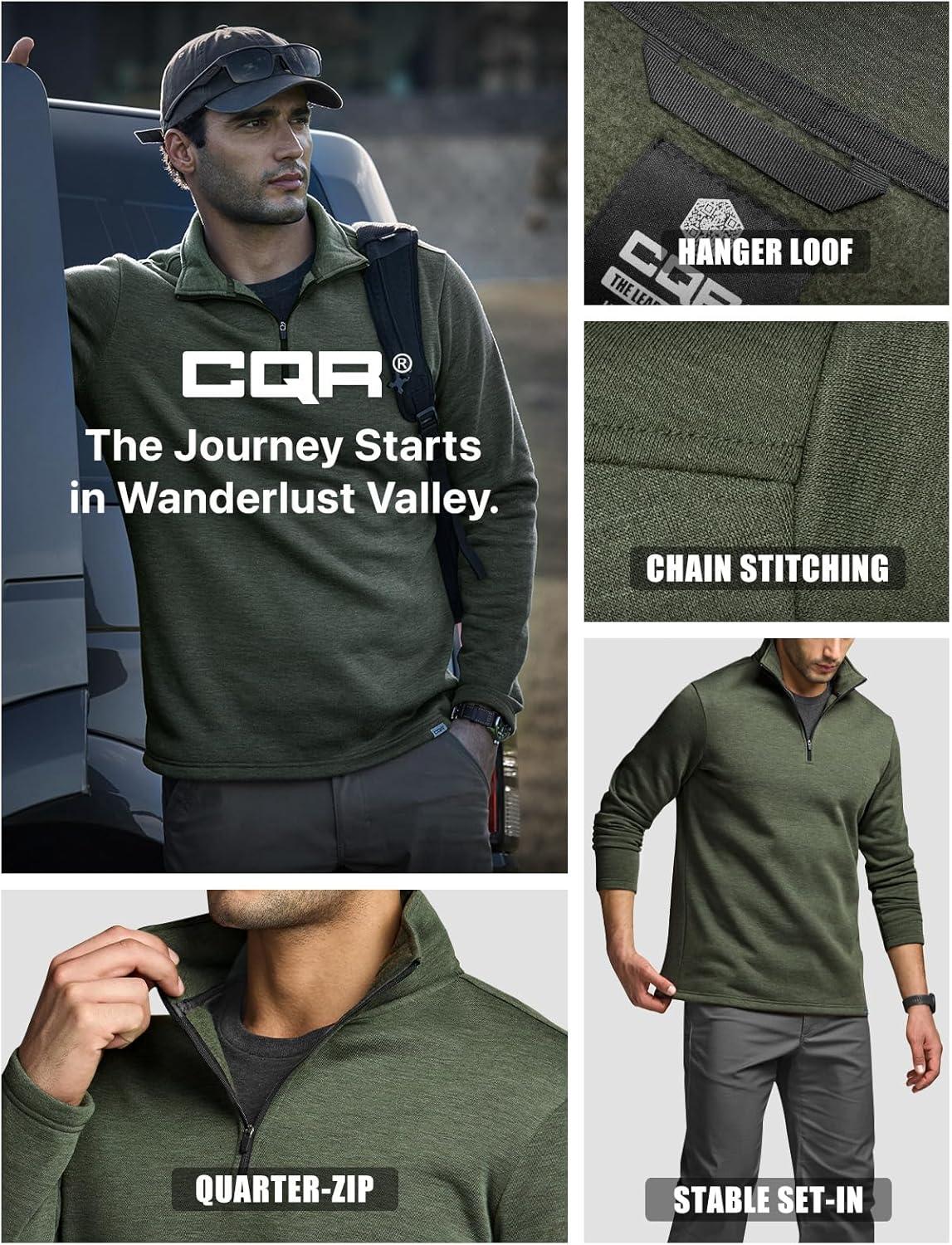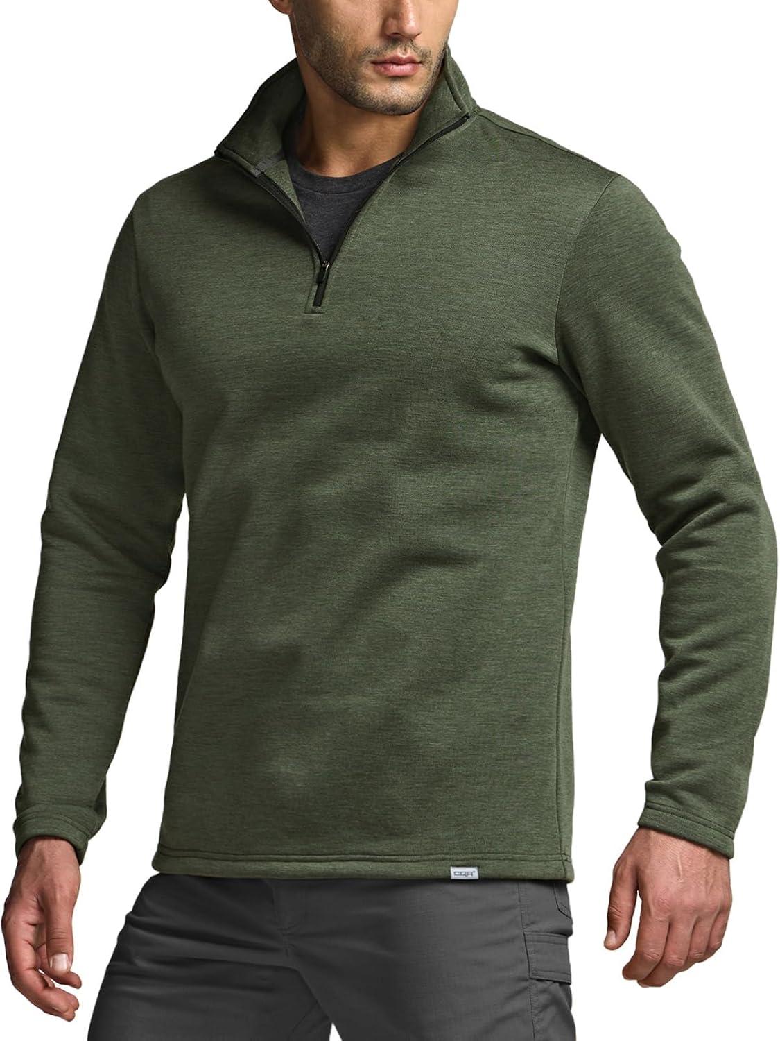 CQR Men’s Thermal Fleece Quarter Zip Sweater, Outdoor Lightweight Long Sleeve Pullover, Casual Mock Neck Polo Sweaters(Valley Olive)