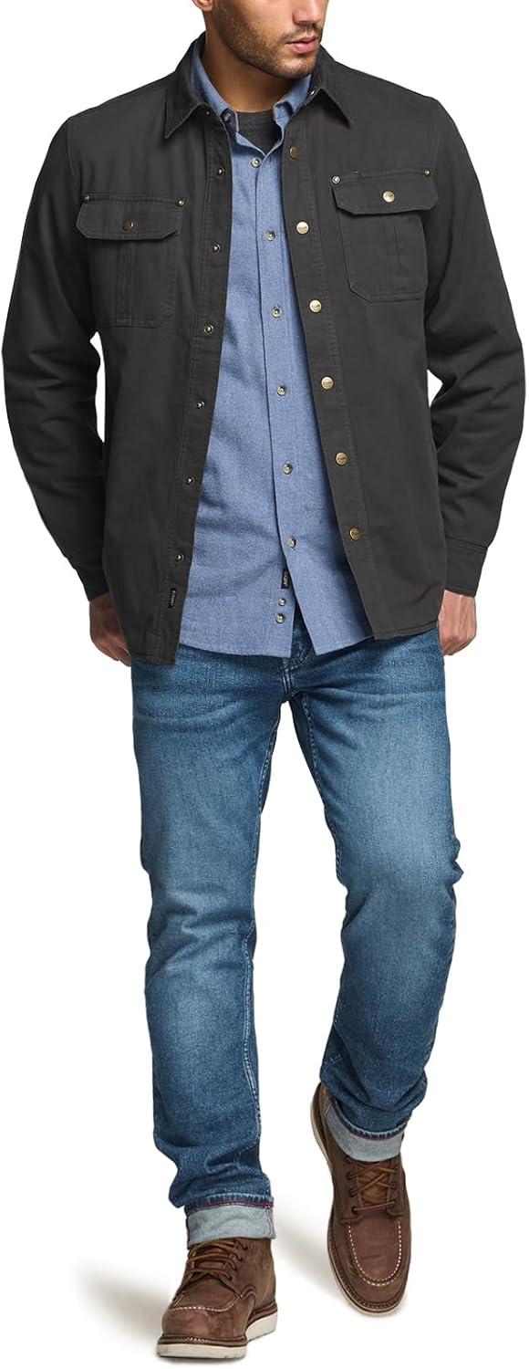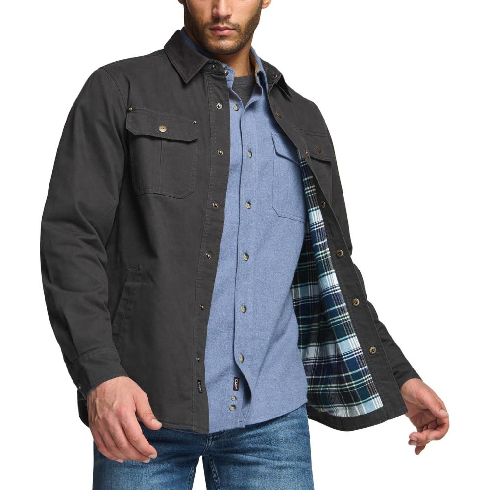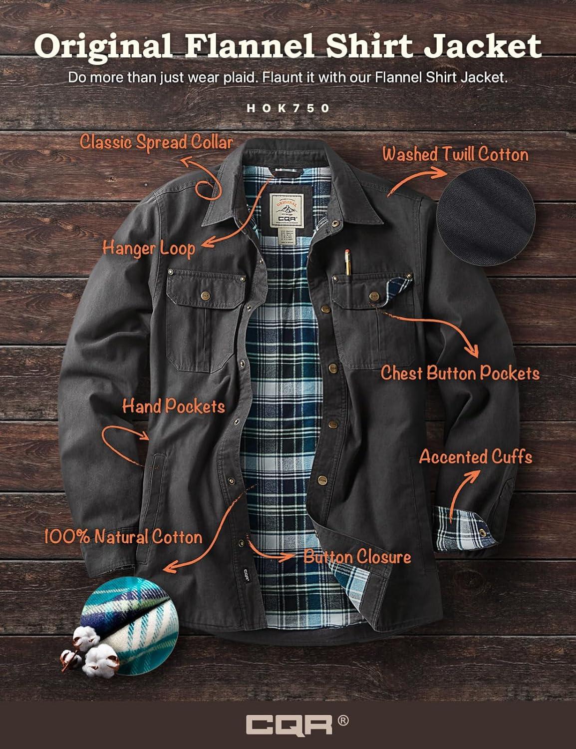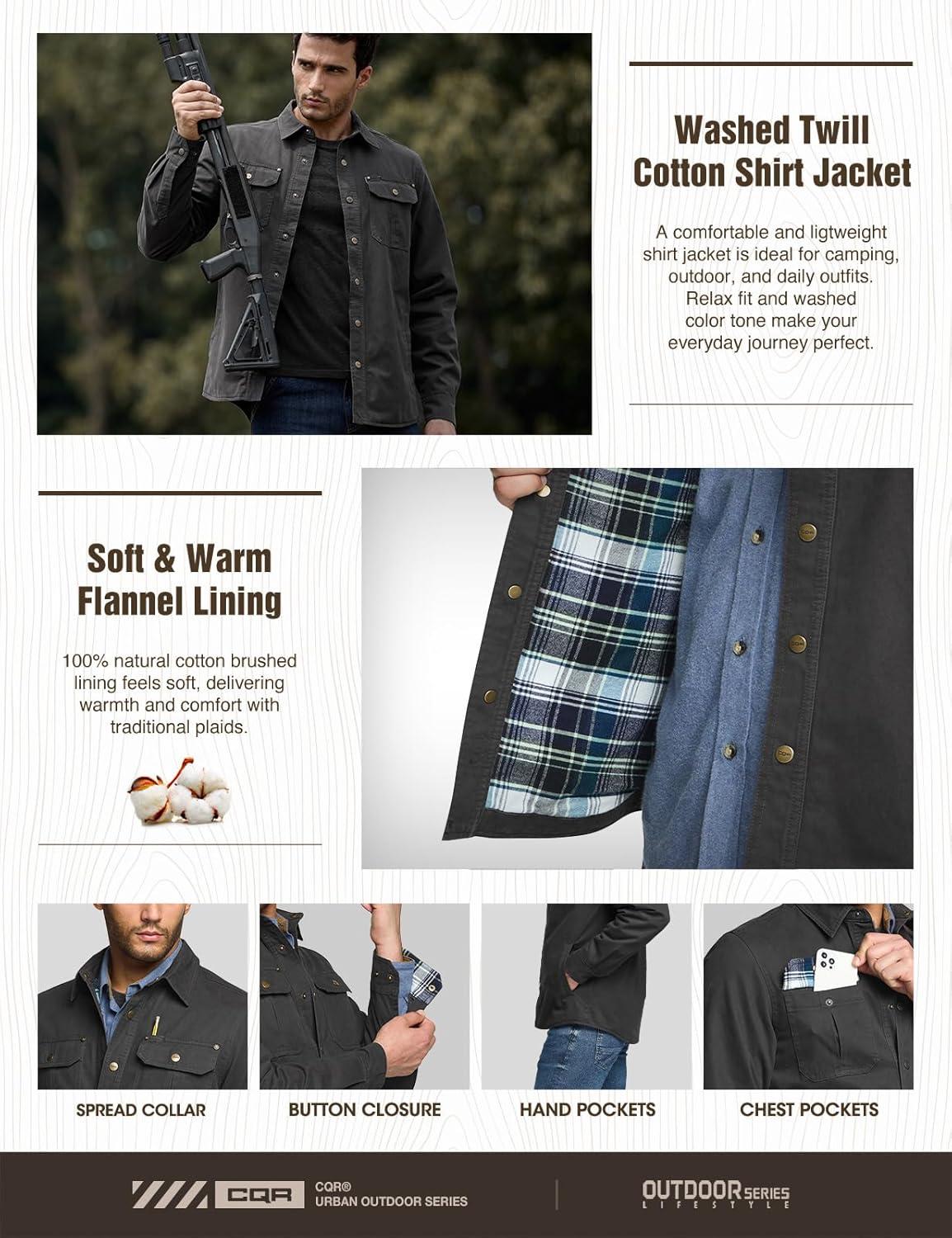 CQR Men’s Twill All Cotton Flannel Lined Shirt Jacket, Soft Brushed Outdoor Shirt Jacket(Twill Shirt Jacket Charcoal Pacific)