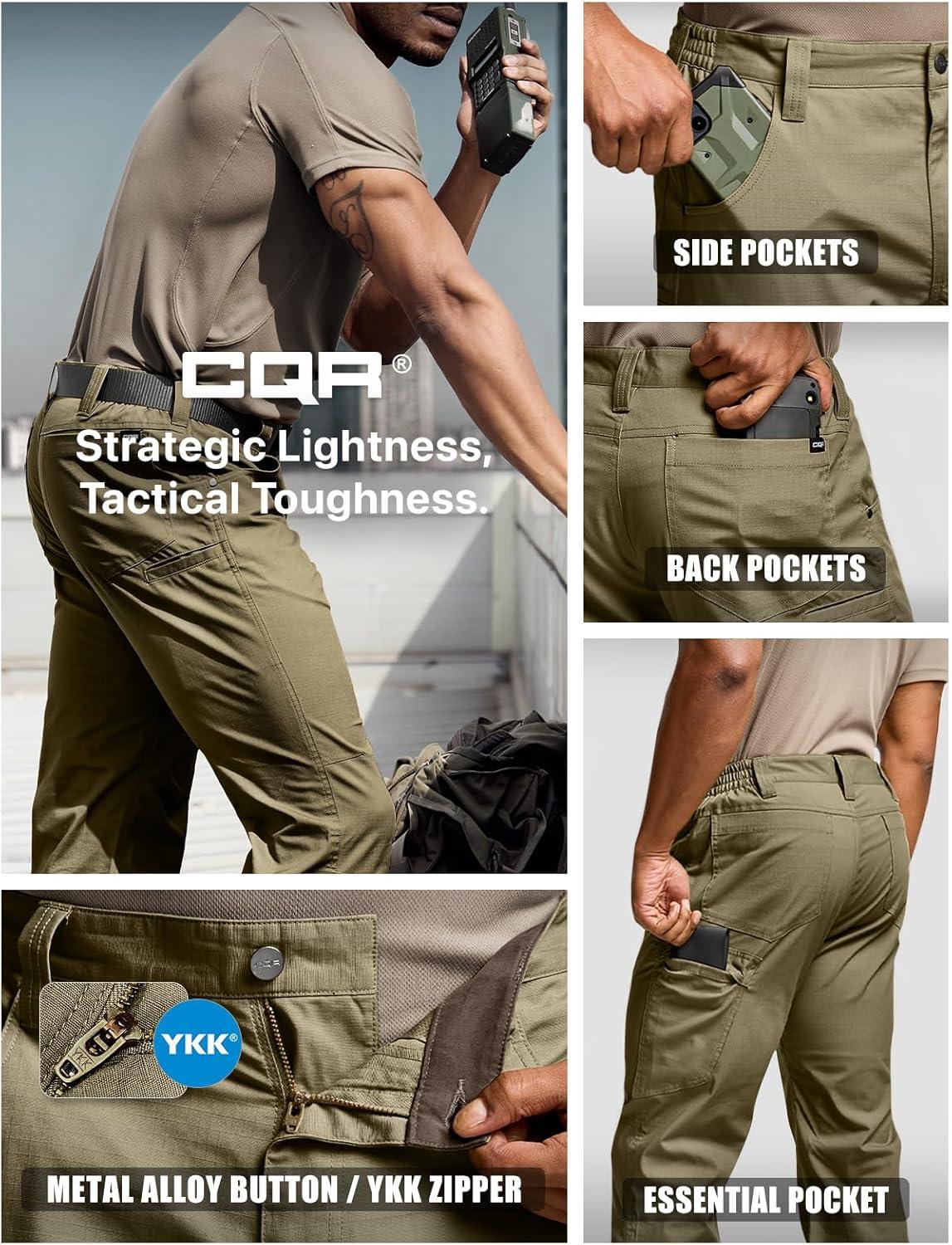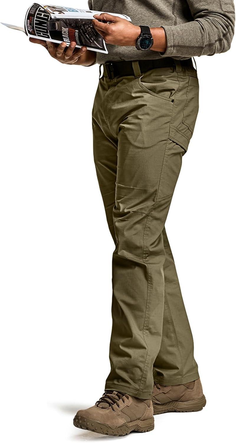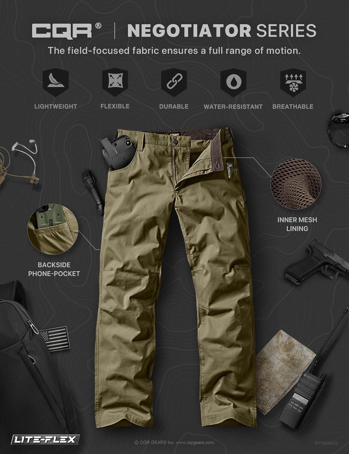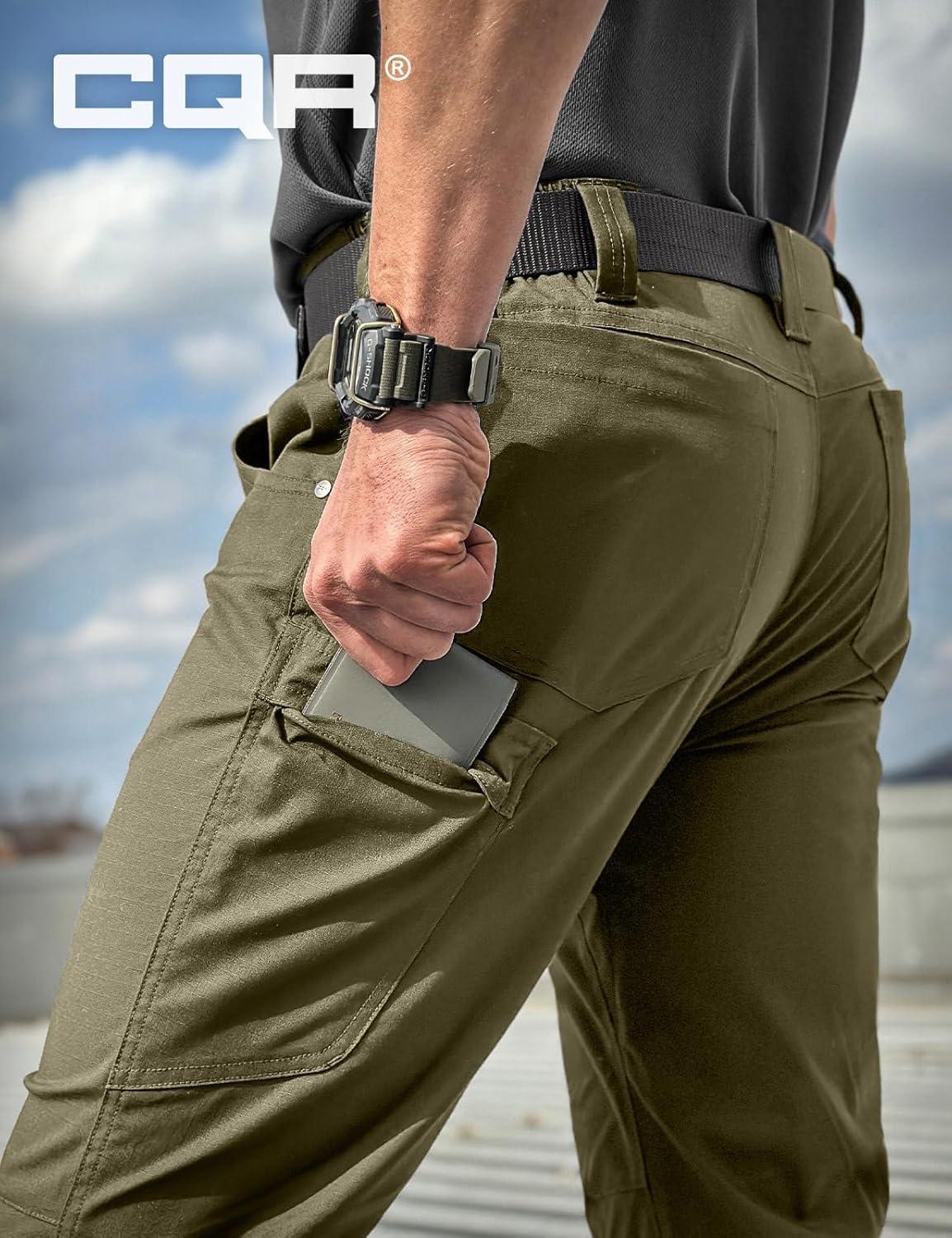 CQR Men’s Utility Flex Cargo Pants, Classic-Fit Casual Stretch Work Pants, Water Resistant Lightweight Tactical Hiking Pants(Negotiator Soil Green)