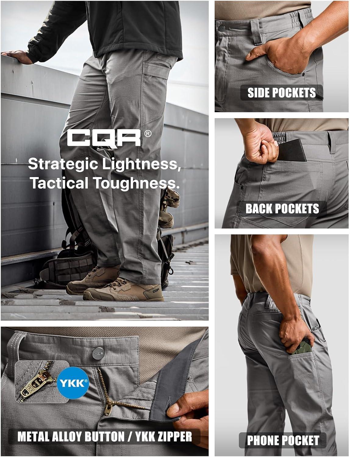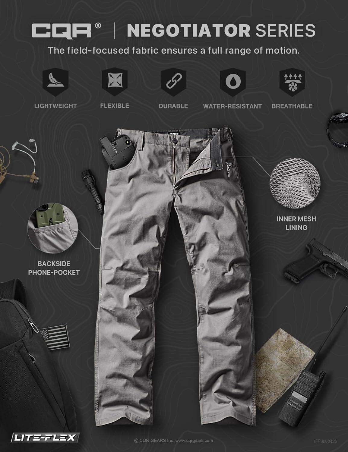 CQR Men’s Utility Flex Cargo Pants, Classic-Fit Casual Stretch Work Pants, Water Resistant Lightweight Tactical Hiking Pants(Negotiator Stone)