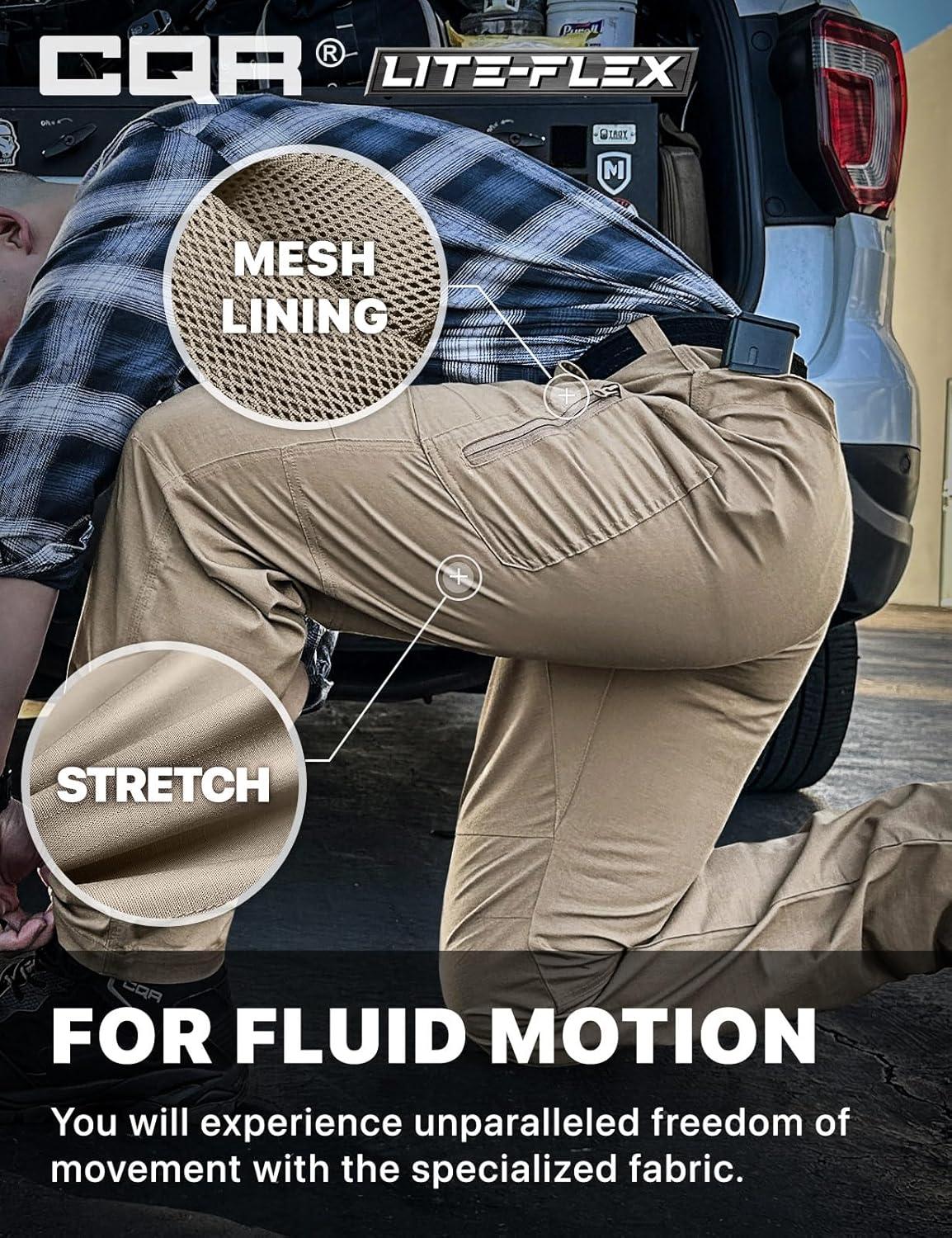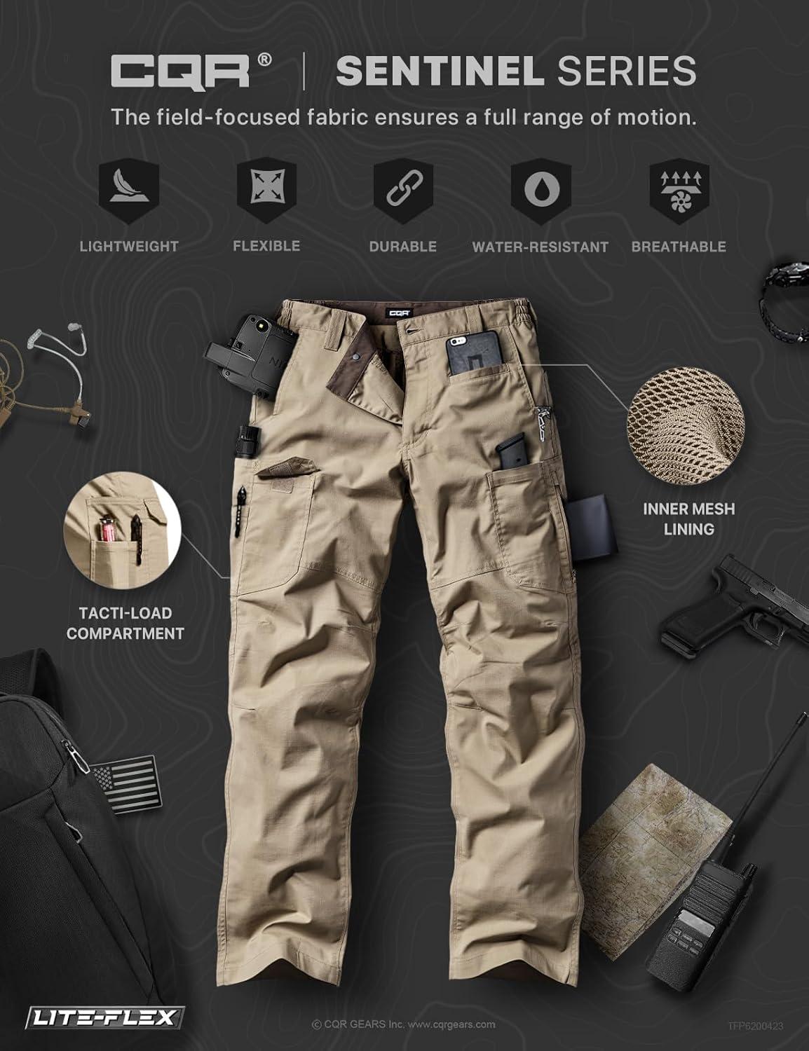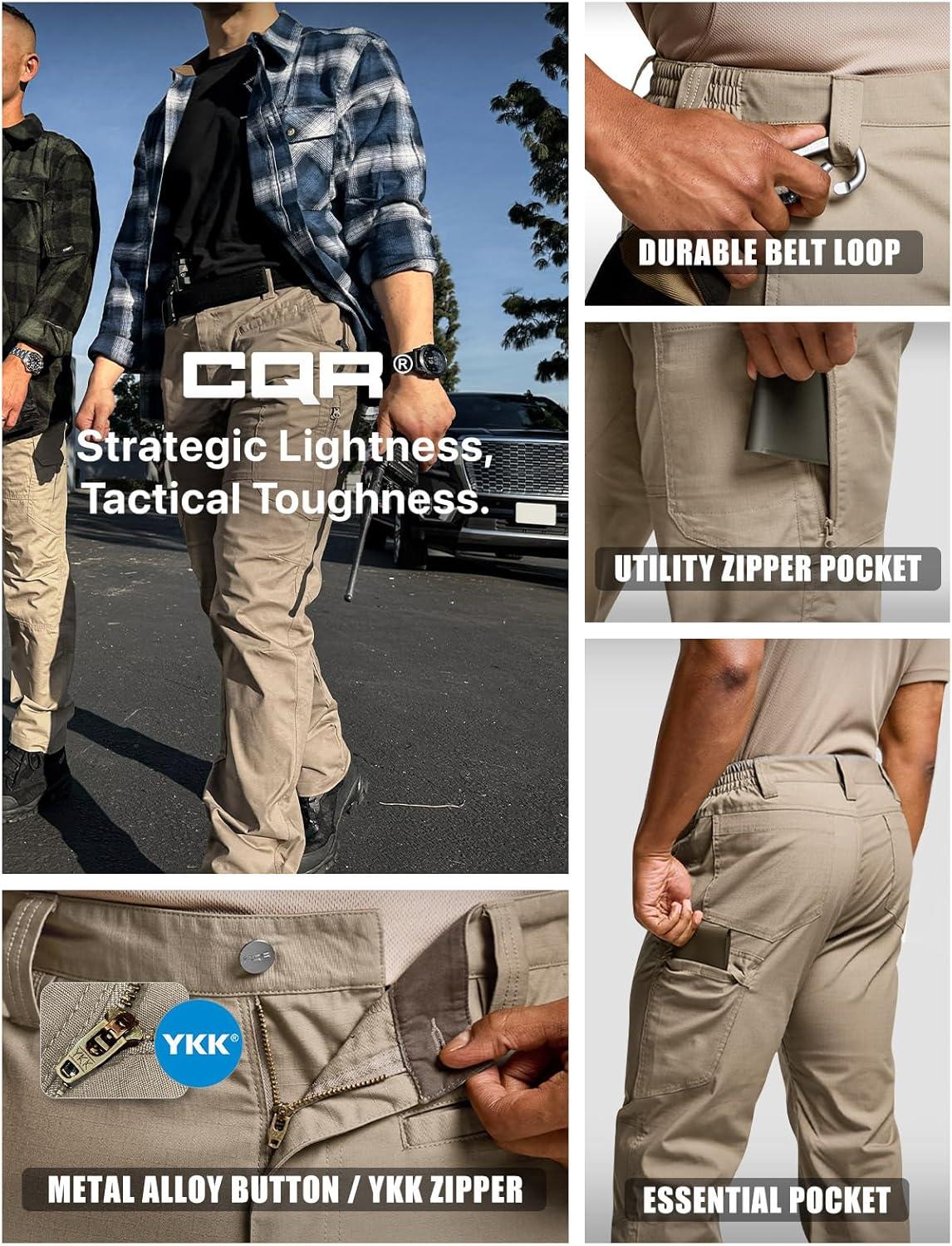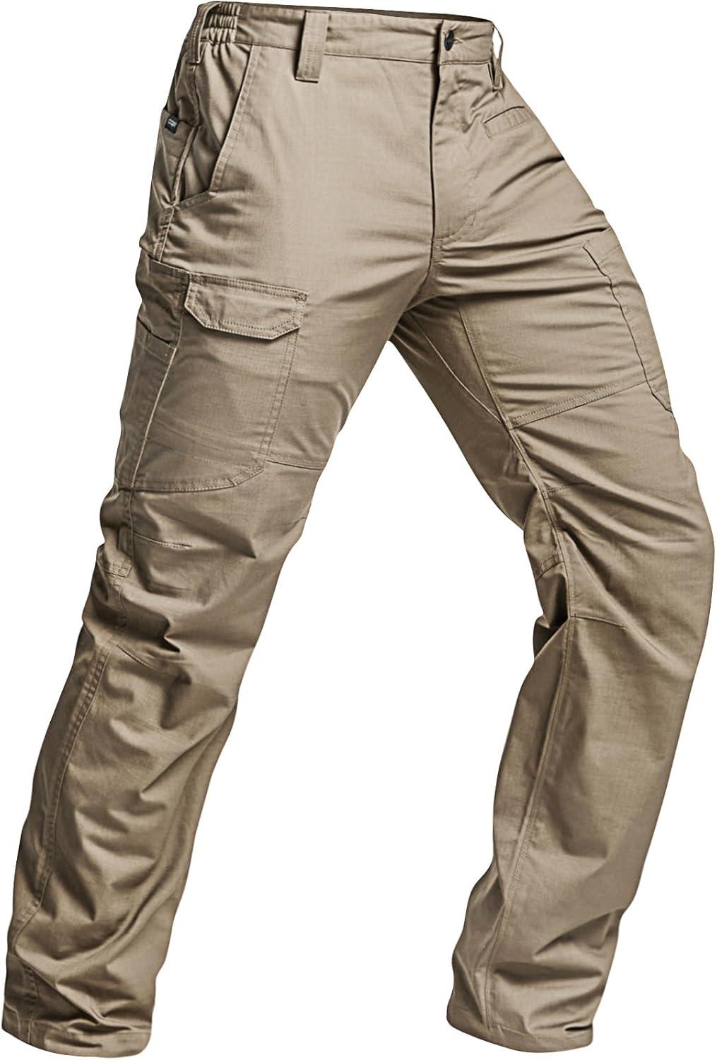 CQR Men’s Utility Flex Cargo Pants, Classic-Fit Casual Stretch Work Pants, Water Resistant Lightweight Tactical Hiking Pants(Sentinel Alamo Khaki)