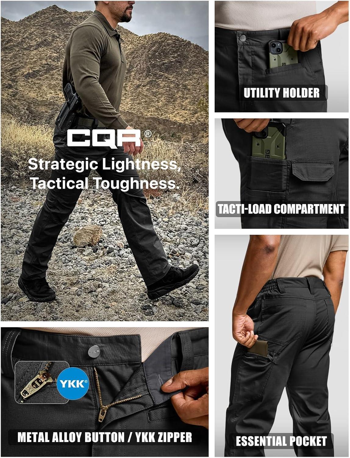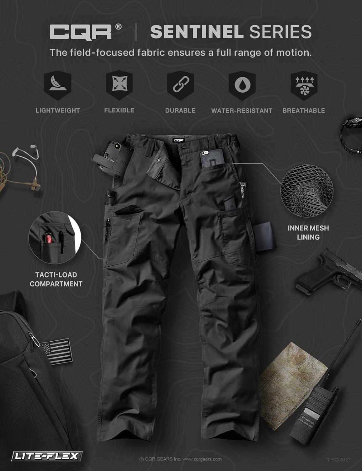 CQR Men’s Utility Flex Cargo Pants, Classic-Fit Casual Stretch Work Pants, Water Resistant Lightweight Tactical Hiking Pants(Sentinel Black)