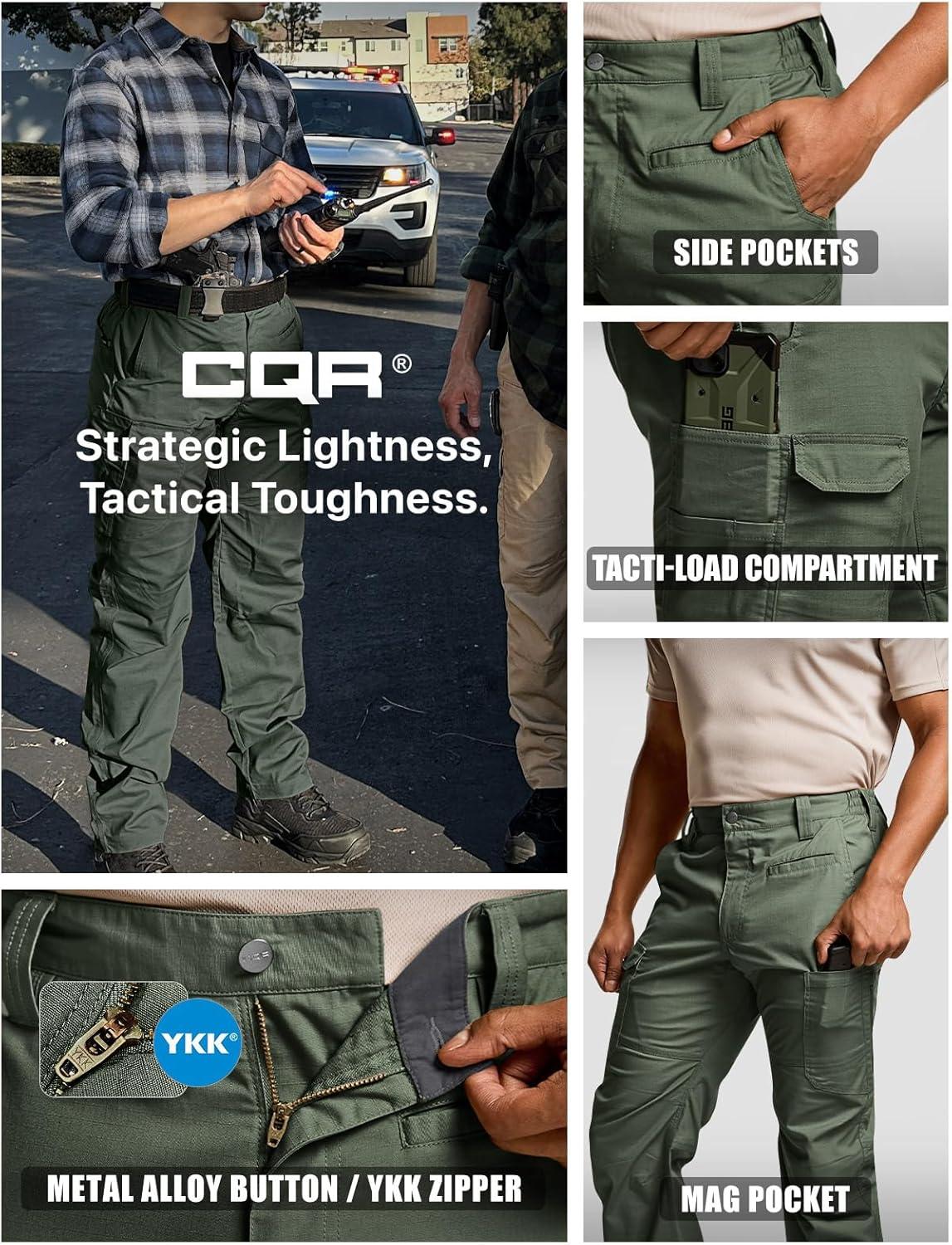 CQR Men’s Utility Flex Cargo Pants, Classic-Fit Casual Stretch Work Pants, Water Resistant Lightweight Tactical Hiking Pants(Sentinel Green Kelp)