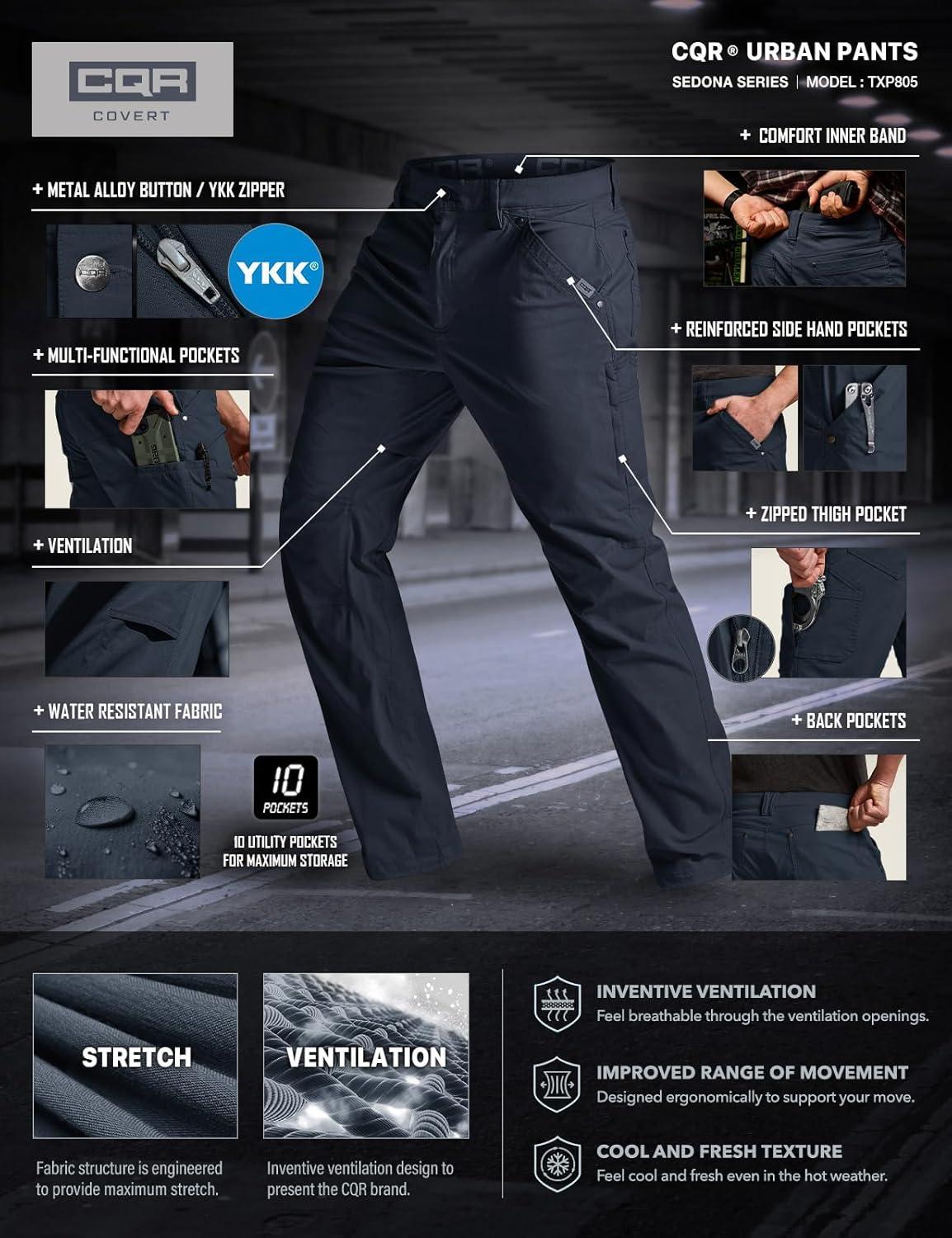 CQR Men’s Vent Stretch Pants, Quick Dry Lightweight Casual Cargo Pants, Water Resistant Straight-Fit Utility Work Pants