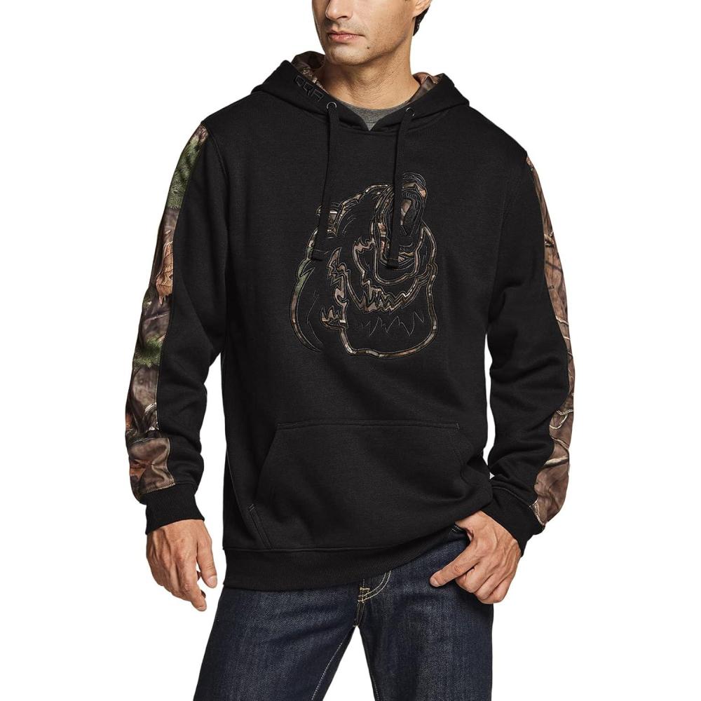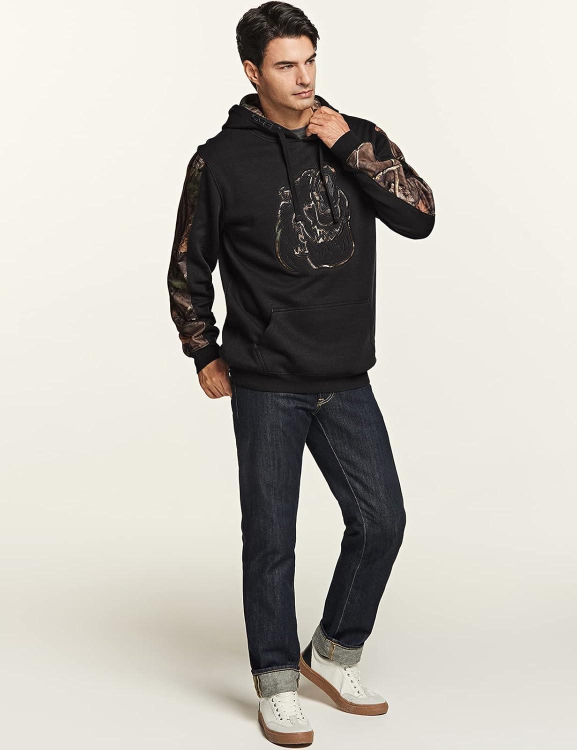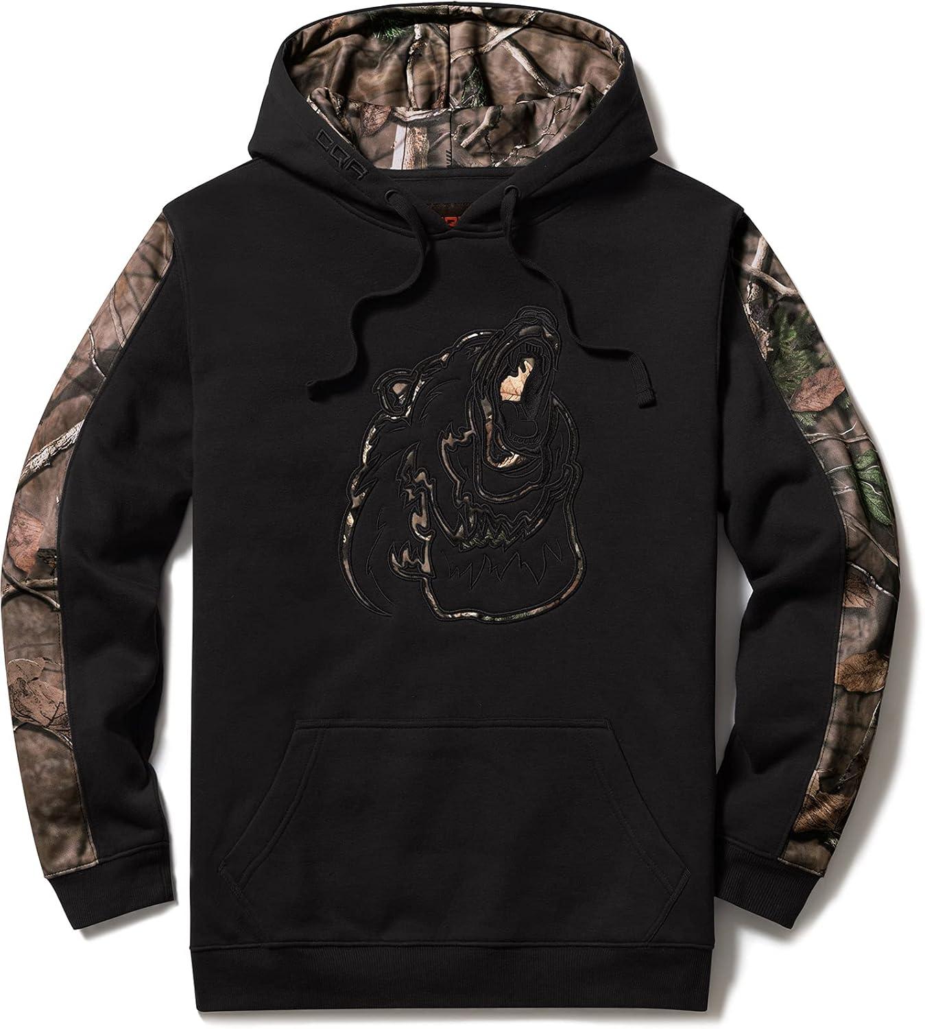 CQR Men’s Winter Fleece Pullover Hoodies, Thermal Long Sleeve Hooded Sweatshirt, Cotton-Blend Outdoor/Tactical Shirts(Fleece Camo Hoodie Black)