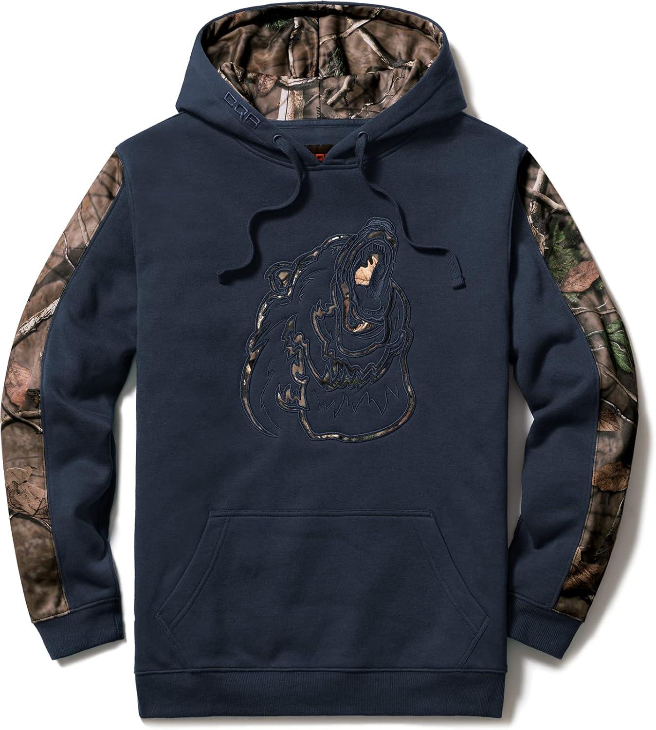CQR Men’s Winter Fleece Pullover Hoodies, Thermal Long Sleeve Hooded Sweatshirt, Cotton-Blend Outdoor/Tactical Shirts(Fleece Camo Hoodie Navy)