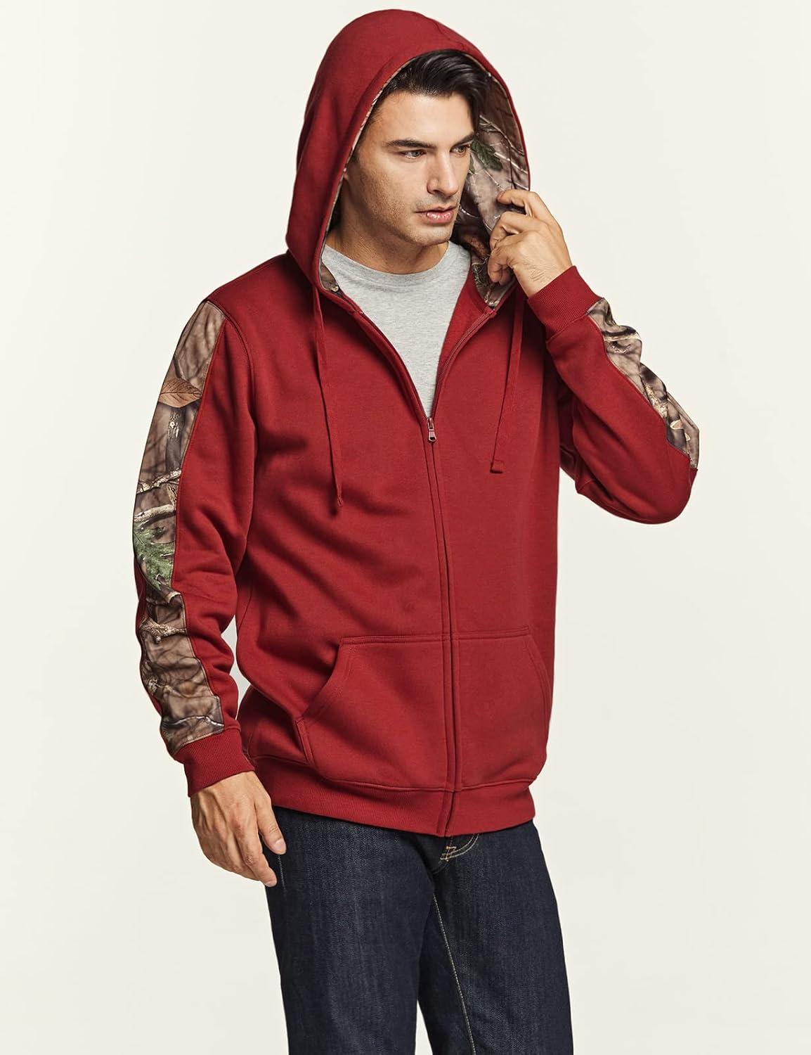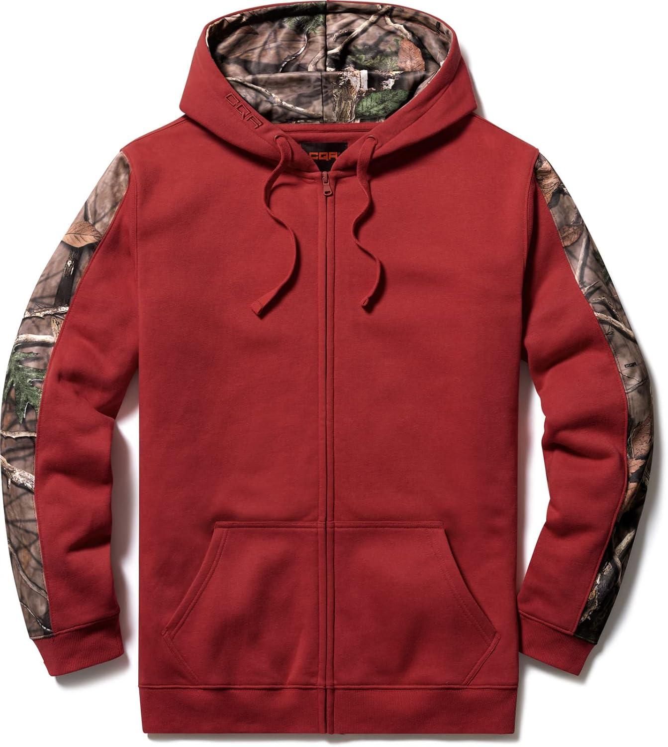 CQR Men’s Winter Fleece Pullover Hoodies, Thermal Long Sleeve Hooded Sweatshirt, Cotton-Blend Outdoor/Tactical Shirts(Fleece Full-zip Hoodie Red)