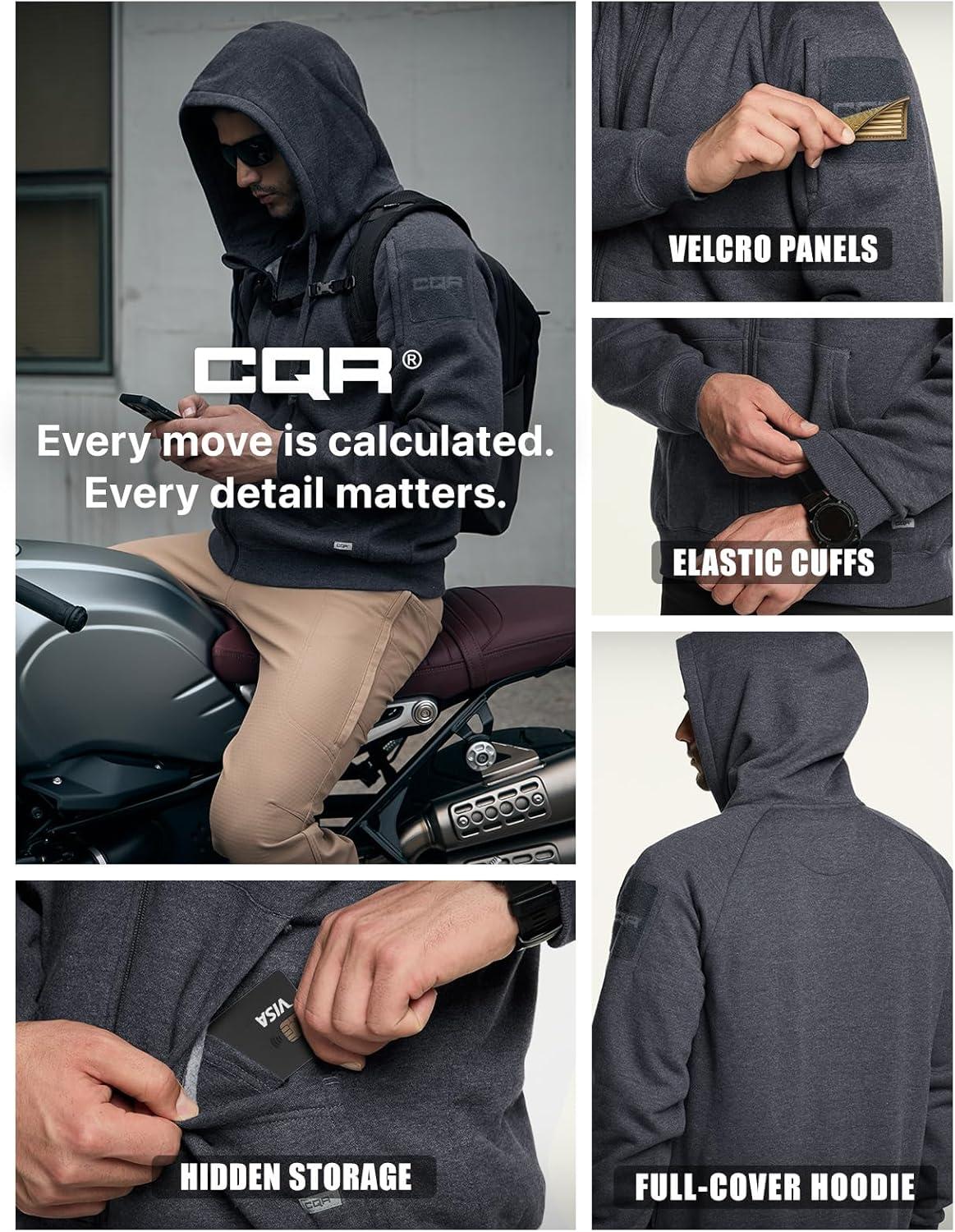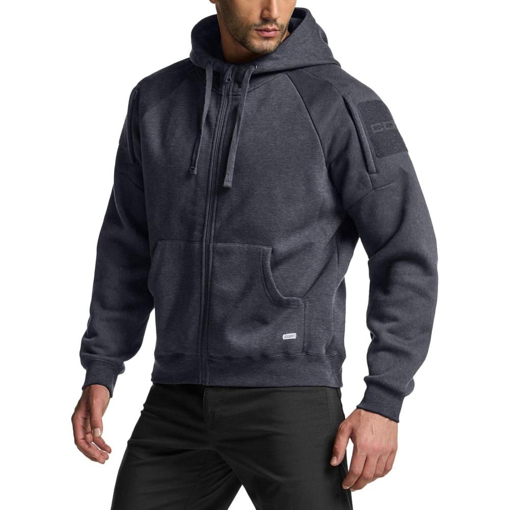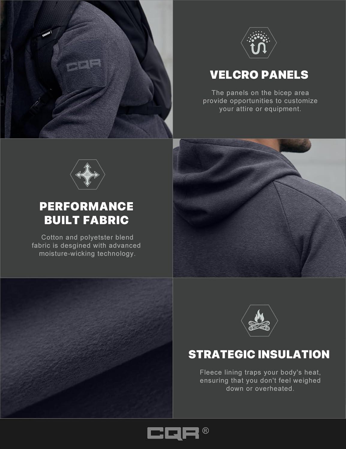 CQR Men’s Winter Fleece Pullover Hoodies, Thermal Long Sleeve Hooded Sweatshirt, Cotton-Blend Outdoor/Tactical Shirts(Fleece Tactical Full-zip Charcoal)