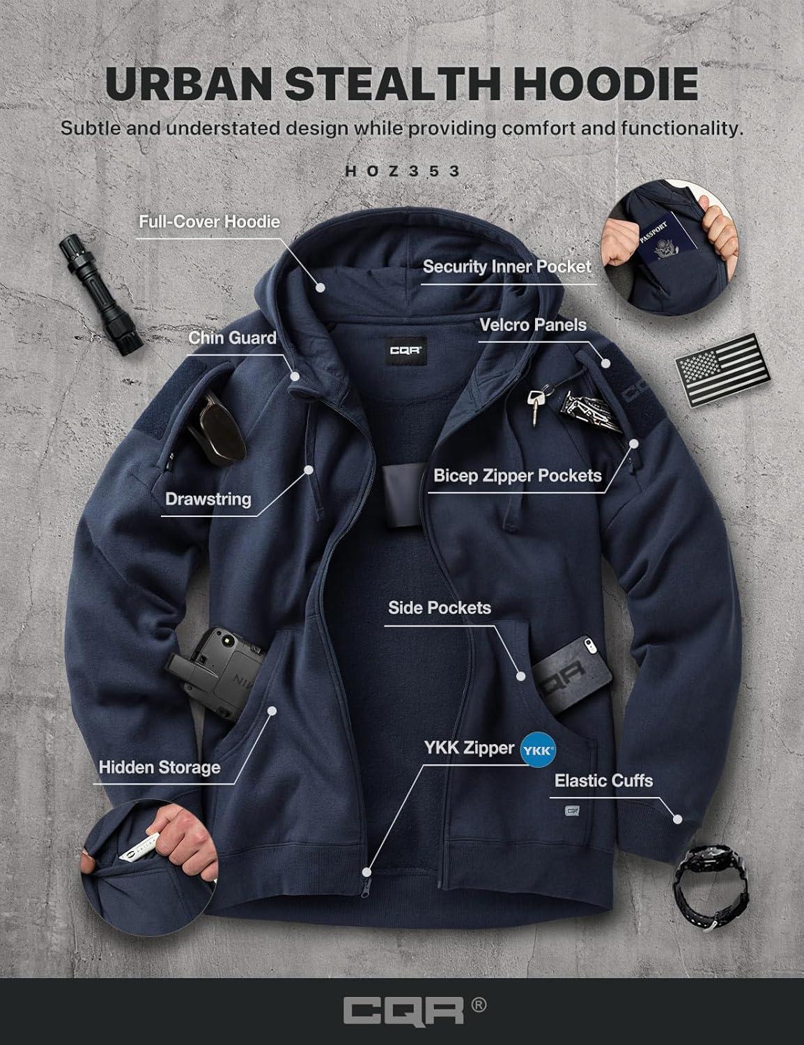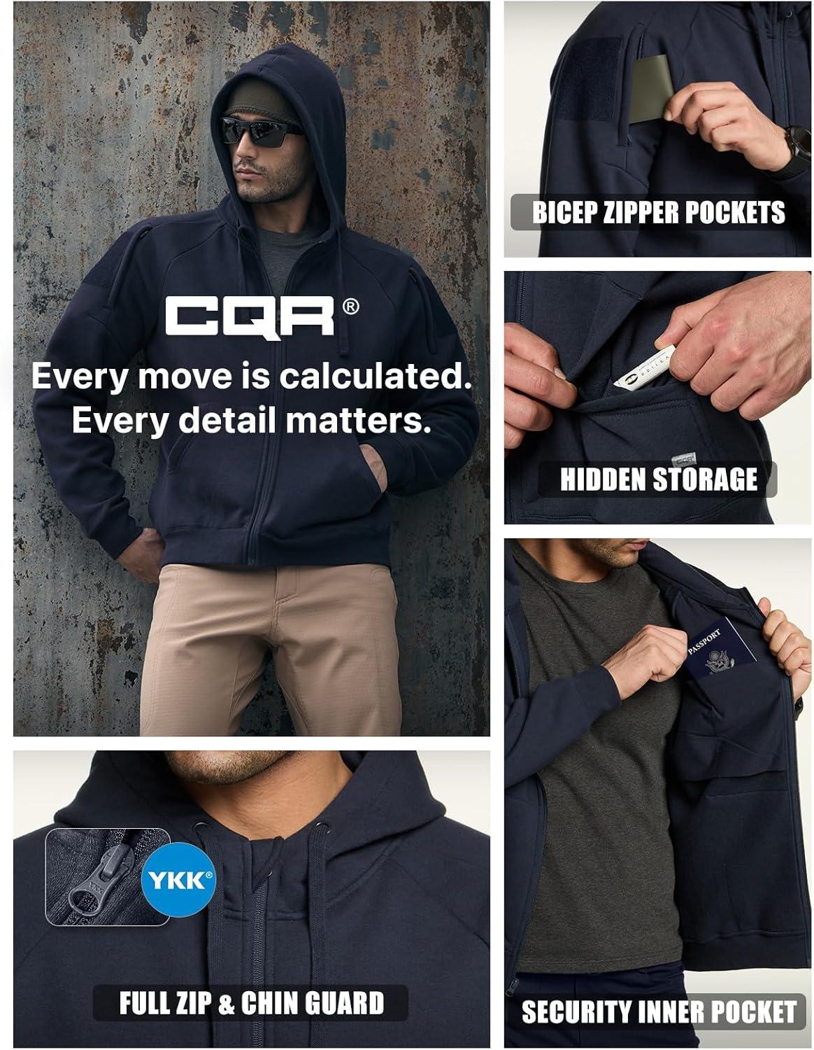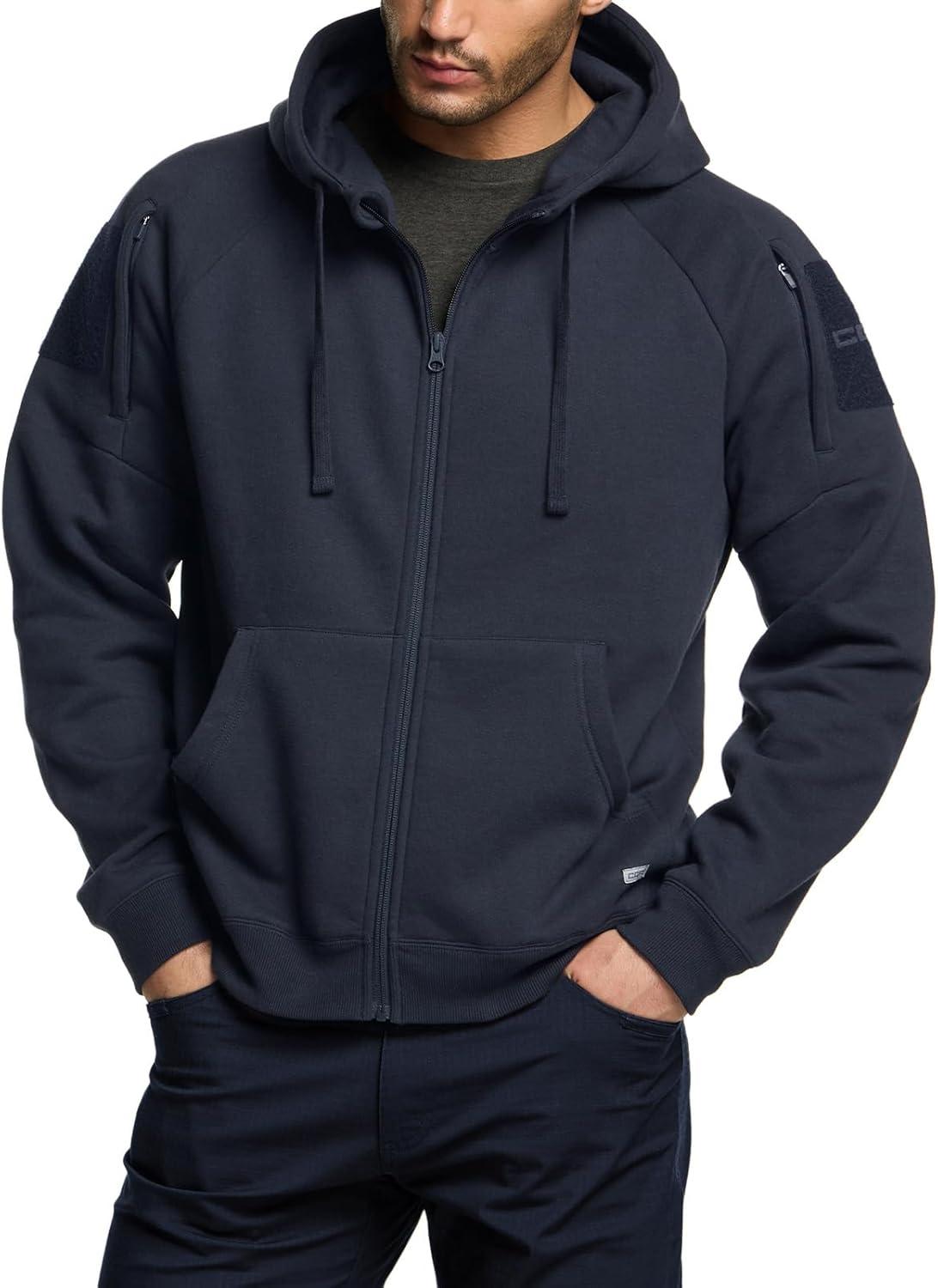 CQR Men’s Winter Fleece Pullover Hoodies, Thermal Long Sleeve Hooded Sweatshirt, Cotton-Blend Outdoor/Tactical Shirts(Fleece Tactical Full-zip Navy)