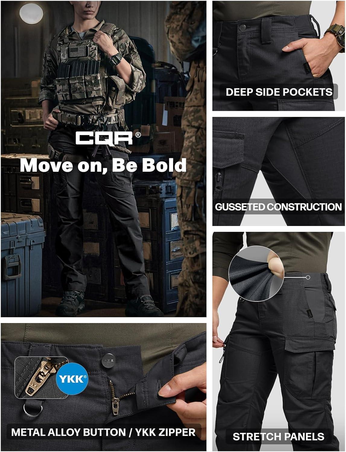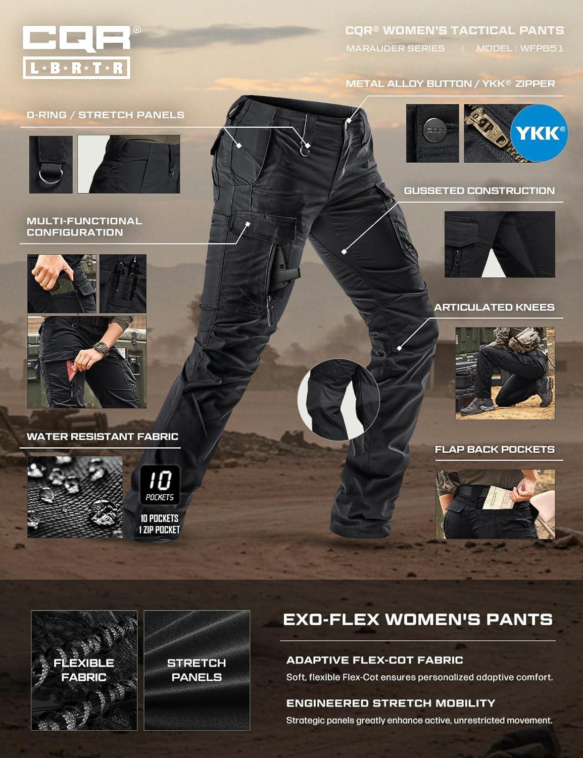 CQR Women’s Flex Stretch Tactical Pants, Water Resistant Ripstop Cargo Work Pants with Pockets for Outdoor & Hiking(Captain Black)