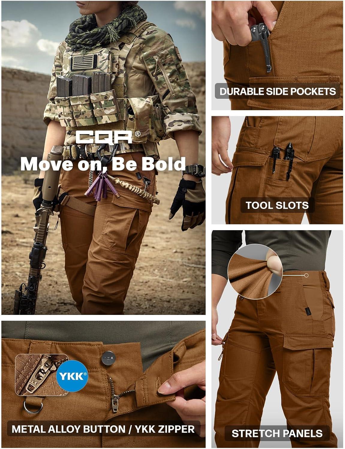 CQR Women’s Flex Stretch Tactical Pants, Water Resistant Ripstop Cargo Work Pants with Pockets for Outdoor & Hiking(Captain Copper Brown)