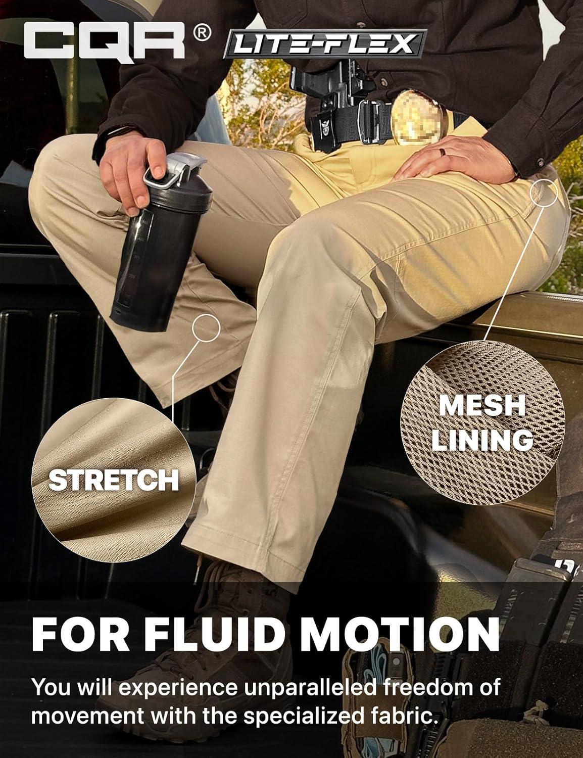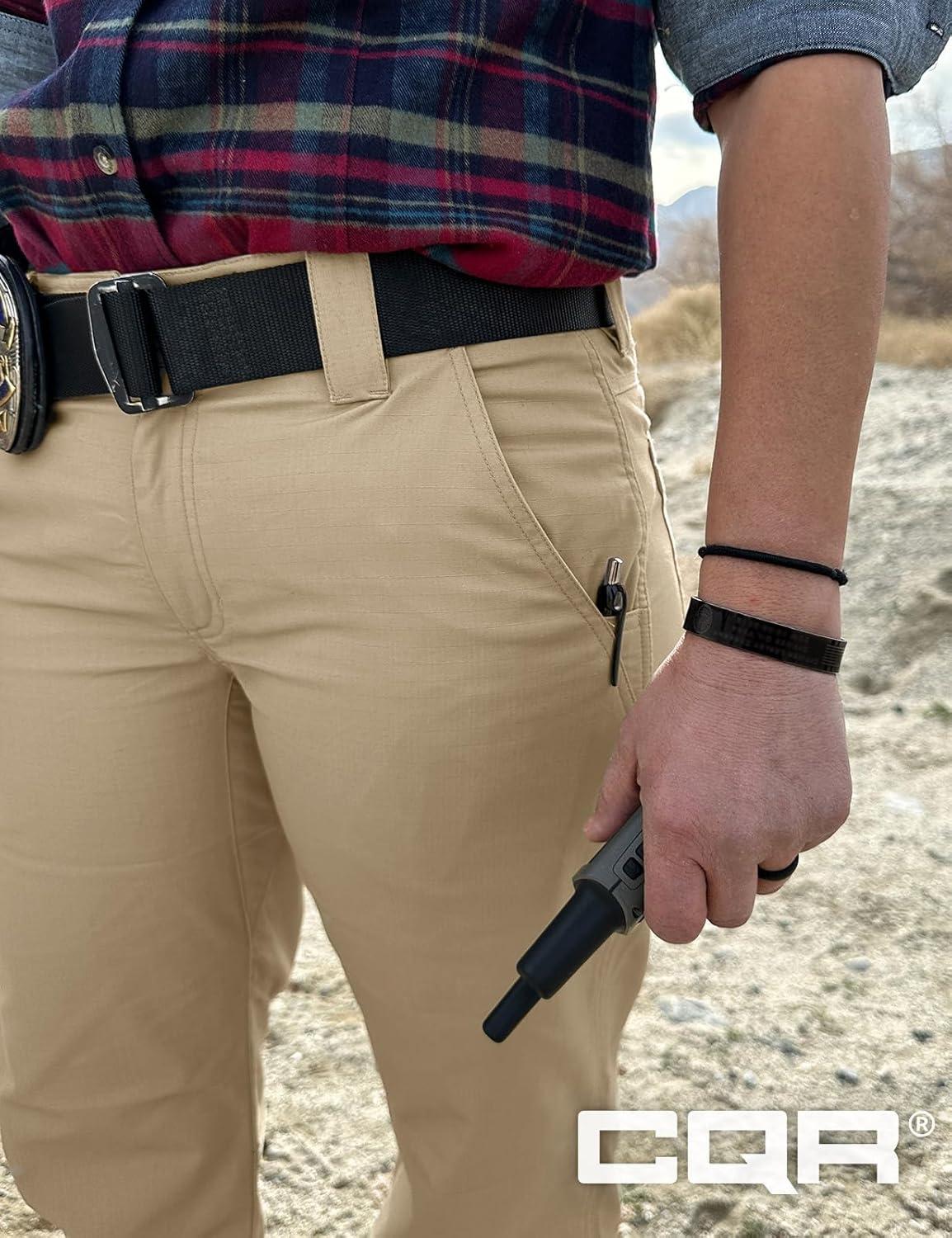 CQR Women’s Flex Stretch Tactical Pants, Water Resistant Ripstop Cargo Work Pants with Pockets for Outdoor & Hiking(Khaki)