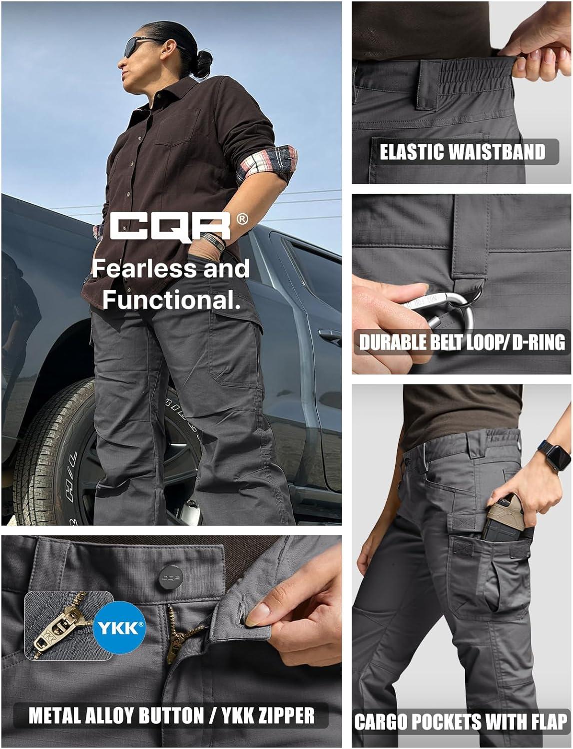 CQR Women’s Flex Stretch Tactical Pants, Water Resistant Ripstop Cargo Work Pants with Pockets for Outdoor & Hiking(Vanguard Charcoal)