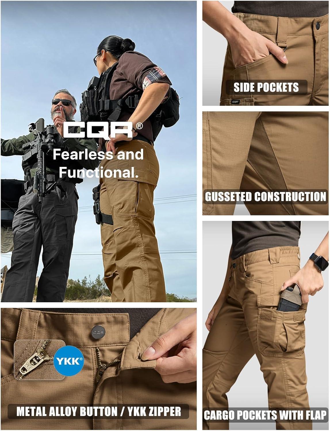 CQR Women’s Flex Stretch Tactical Pants, Water Resistant Ripstop Cargo Work Pants with Pockets for Outdoor & Hiking(Vanguard Cougar)